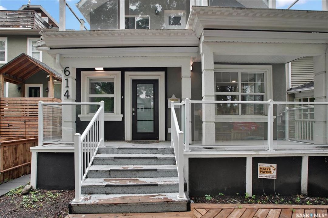 Welcome to 614 McPherson Ave — just steps from scenic river trails and parks. This beautifully renovated home (2022-2023) with great victorian street appeal is loaded with windows has been completely redone with new, stucco, shingles, windows, and upper-level balconies on the exterior. Inside you'll find a spacious kitchen, large living room and huge primary suite with 5 piece ensuite and two separate closets. Vinyl plank flooring throughout. Upstairs offers two more bedrooms (no closets), each with access to either a front or rear balcony, a 4 piece bathroom, and wet bar area, along with additional laundry hook ups. There's also a charming sunroom at the back of the house, perfect for relaxing. The basement offers great potential for rental income with its separate entrance, two bedrooms, a second kitchen, and its own laundry setup. Home comes complete with a double detached garage!