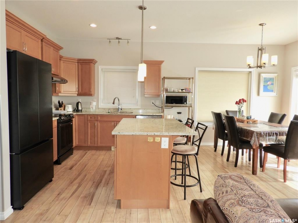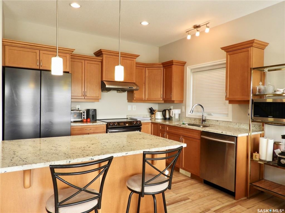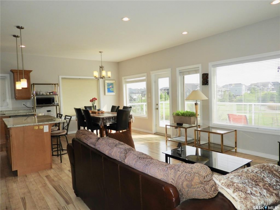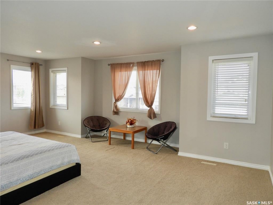 Executive walk-out style family home located on one of the finest lots Stonebridge offers backing Howard Harding Park. This spacious park backing home sits on a oversized rectangular lot. This generous home offers approx 1741 sq/ft through the main & 2nd level, plus a full walk-out level! A total of 5 bedrooms & 3 full bathrooms! The main floor with 9' ceilings offers an inviting foyer, great room, loads of east facing windows & a stone accented gas fireplace. The kitchen has an abundance of cabinet & counter space and large island, dinning overlooks the yard with great views of the park and lake with walking trails. Down the hall to the primary bedroom with large east facing windows, an ensuite with soaker tub and walk in shower. There are 2 additional bedrooms, 4 piece bath and main floor laundry. Up to the 2nd level is a huge bonus room with ample space to add your home theatre or just bonus living space. Down the stairs to the walk-out level offers a family room, a gym area, Den/office flex room, a bedroom (does not have closet), a full bath, 2nd bedroom with Dbl closets, storage/mechanical rooms with laundry, The attached 2 car garage finished. Moving outside, the huge well planned backyard overlooking park, walking trails & lake. The home is 2 min to endless shops and amenities with quick access to circle drive & Hwy 11 South.