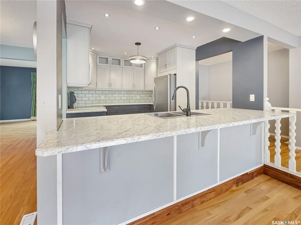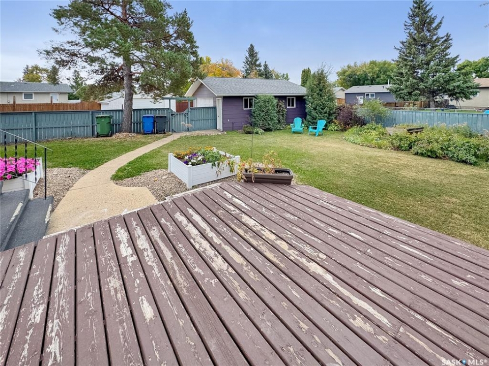 Welcome to a Westside gem offering both comfort and convenience. Perfectly positioned near schools and the scenic Territorial trail, this home combines modern updates with timeless charm. This 3 bedroom 3 bathroom home is designed with a family in mind. The master bedroom features a walk through closet to the 2-pc ensuite. A renovated kitchen with soft close cupboards and island(2019) opens to a light-filled family room addition where a gas fireplace sets the tone for cozy evenings. The Floor to ceiling windows add ample natural light while giving you a panoramic view of the beautifully landscaped back yard. Hardwood floors, an upgraded bathroom (2023), and main floor laundry bring ease to daily living, while a formal living room provides extra space for hosting. With upgrades like a new water heater (2023), garage shingles (2024), improved attic ventilation, plus updated windows, doors, and blinds, you can simply move in and enjoy. Central air (2022) and central vac are thoughtful extras. The finished basement expands your living options with a roomy rec space, 3-piece bath, and multiple flex rooms for hobbies, a gym or work. Step outside to discover mature trees, underground sprinklers, a sunny patio, and a double detached garage with alley access. A well-cared-for home in a neighborhood you'll love. Don't miss out, call today for a private showing.