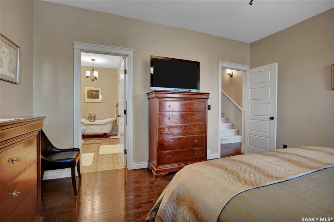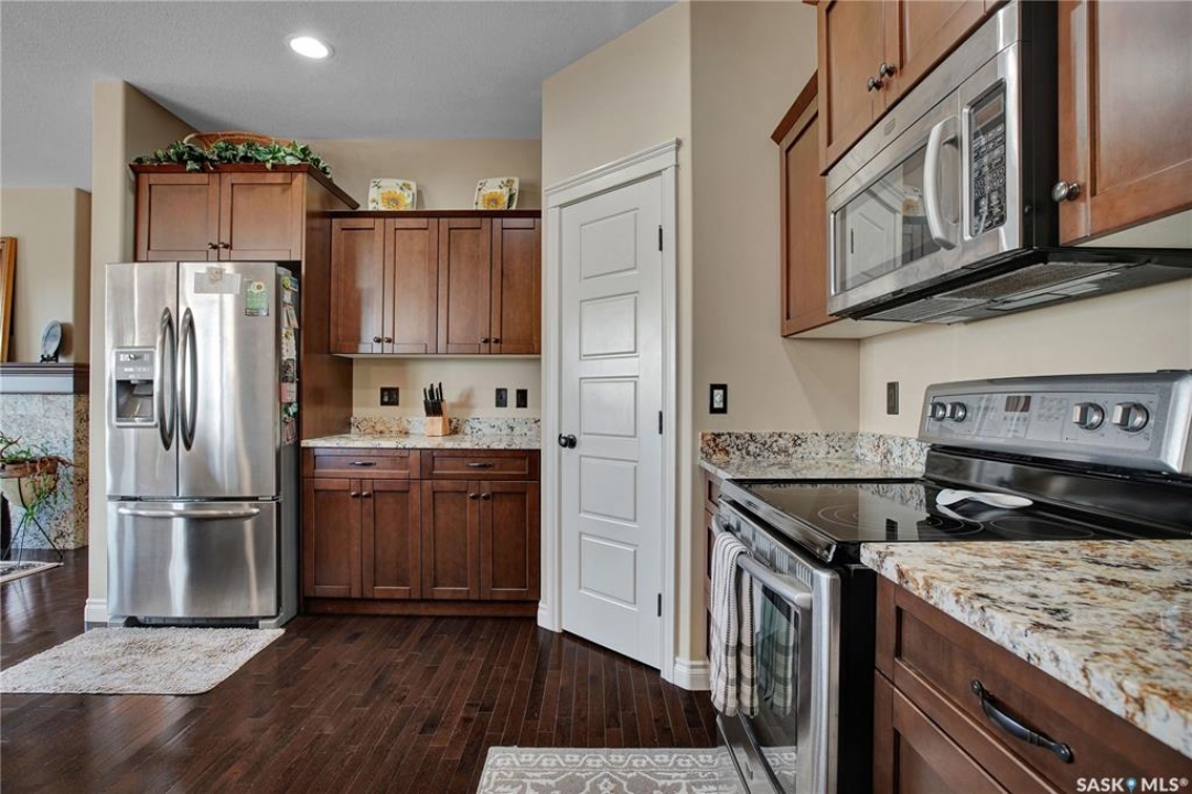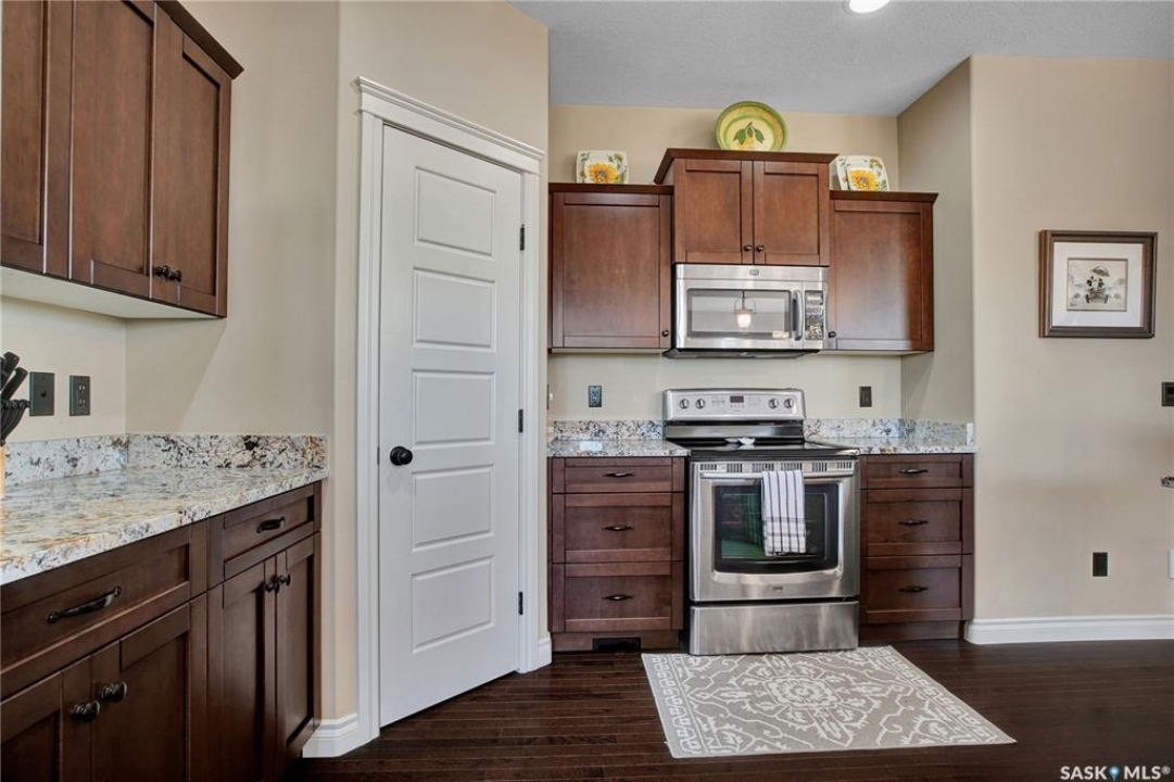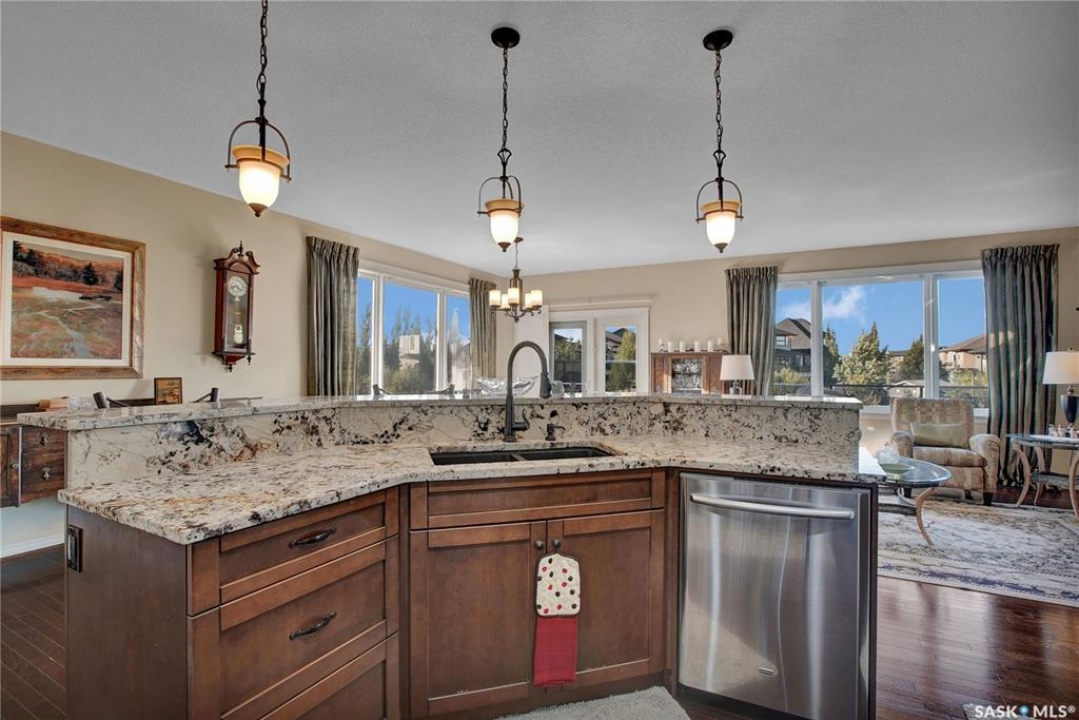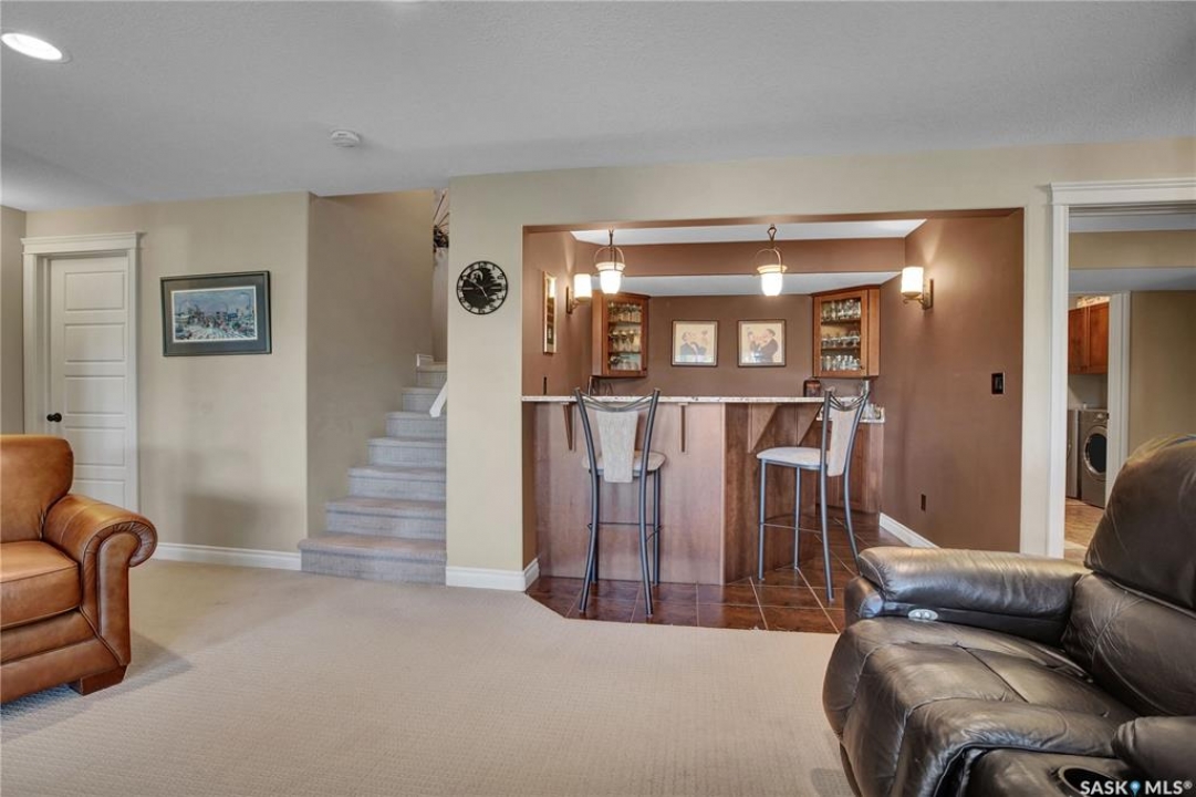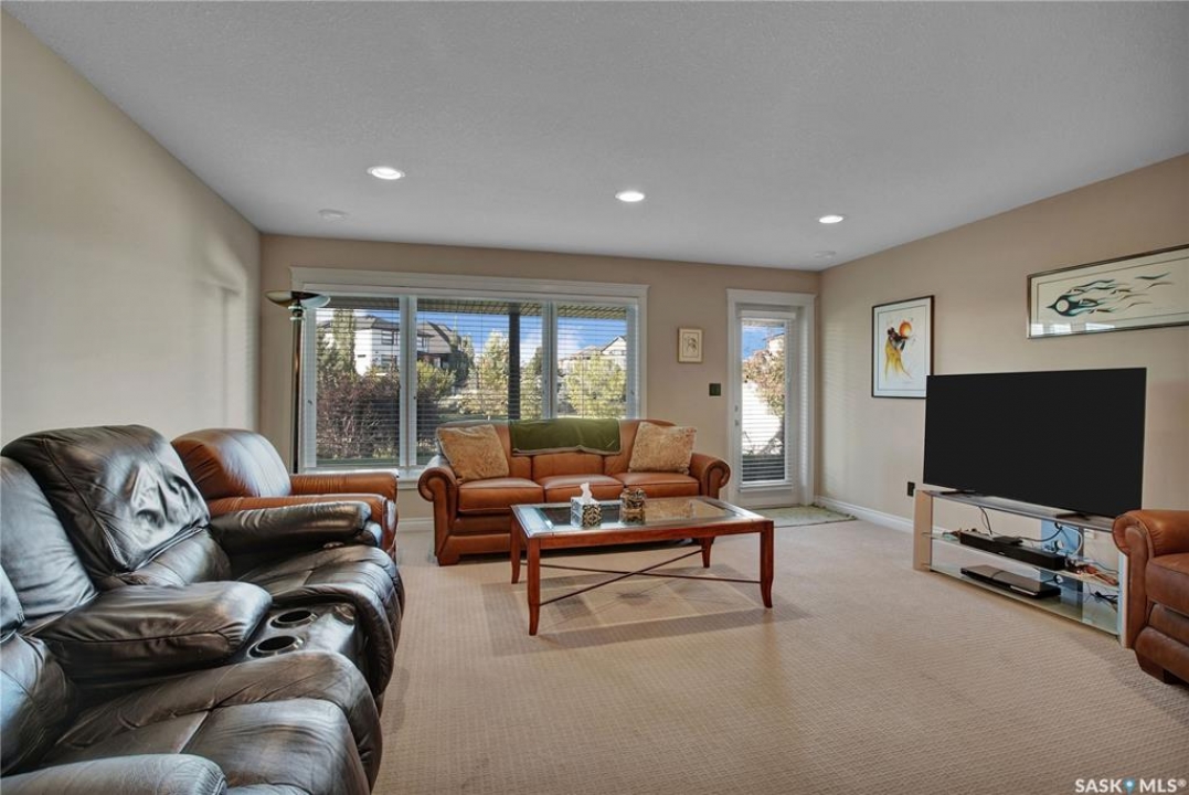 406 Trimble Crescent offers the best of both worlds—bungalow-style convenience with the bonus space of a second storey. This 1,754 sq. ft. one-and-a-half storey home is set on a desirable Willowgrove street, backing onto peaceful green space. The main floor is designed for easy everyday living with 9-ft ceilings, a bright open-concept kitchen, dining, and living area, a 2-piece bath, and a primary suite right on the main level. The primary suite features a spacious walk-in closet and a private ensuite with a jetted tub and tiled shower. Off the main living space, step out onto the massive 40-foot deck that spans the full width of the house—an incredible spot for entertaining, relaxing, and enjoying the backyard and greenspace views. Upstairs, two generous bedrooms each with walk-in closets share a full bathroom, giving family or guests their own private space. The fully developed walkout basement adds even more living options, complete with two additional bedrooms, a full bath, laundry, and a wet-bar that's ideal for hosting or movie nights. The landscaped yard ties it all together, with direct access to the green space behind. To top it off, the triple car garage is fully insulated, drywalled, and heated, with durable epoxy floors—perfect for vehicles, storage, or a home workshop.