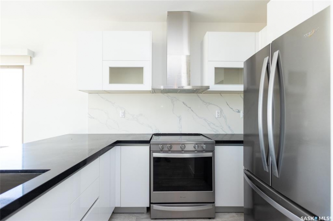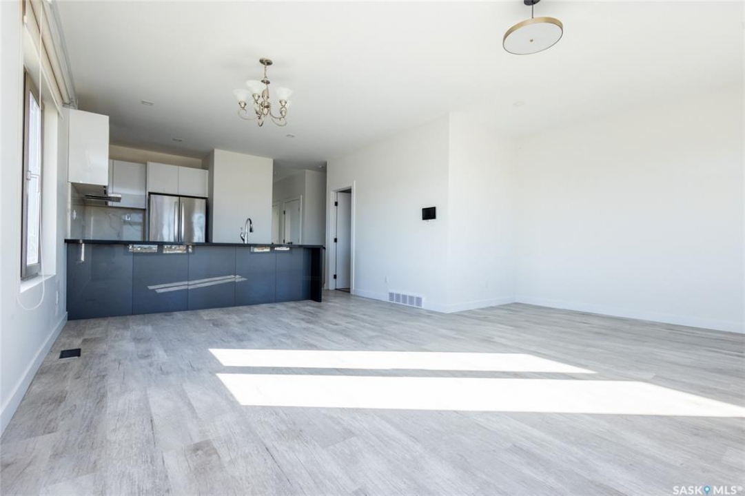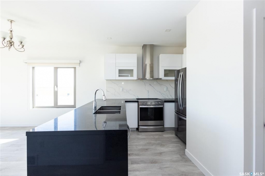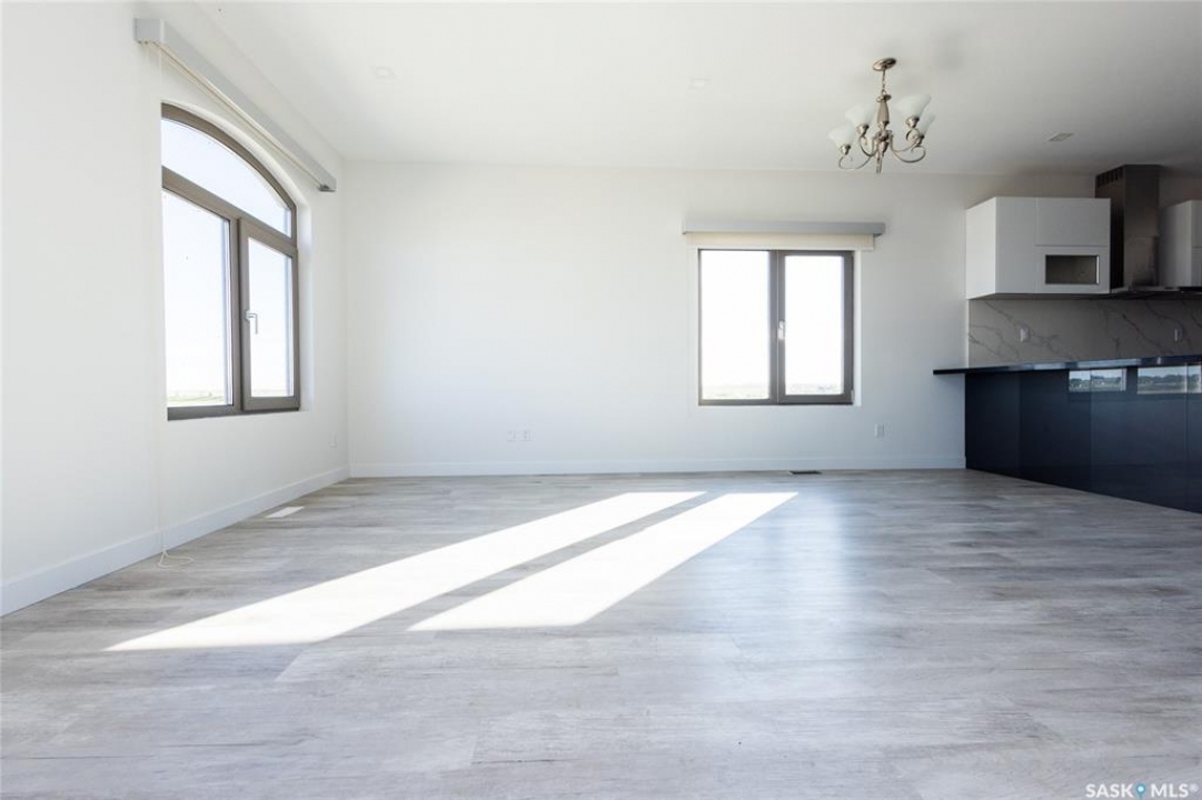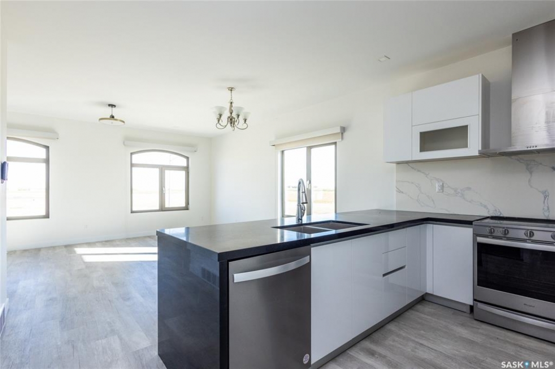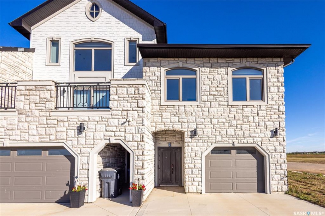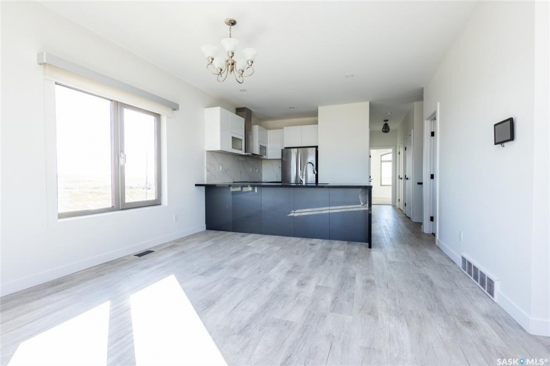Rare found commercial and residential combined for sale. No Condo Fees. End Unit including side landscrape yard for personal use. First floor has commercial space: can be office or make a coffee shop. 2nd floor offers living area: large living room with around huge windows, beautiful kitchen has L-shape island and quartz counter tops. Master bedroom with walk-in closet and 3pc bathroom ensuite. One more good size bedroom. Very bright and great country view around. 9 feet ceiling and central A/C. Located just minutes away from Blackstrap Lake and about 20 minutes away from Saskatoon.