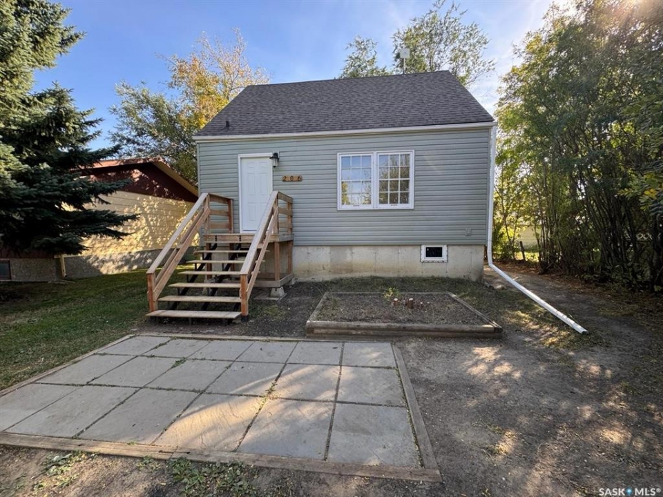 This 3-bedroom, 1 & �-storey wartime character home at 206 Carson Street in Dundurn, just a 20-minute commute from Saskatoon, is an ideal starter home on a spacious 50'x130' mature treed lot. Moved onto a modern concrete basement in approximately 2005, it features an upgraded kitchen with a walk-up breakfast bar, an open living/dining area, and a main-floor bedroom, with two upstairs bedrooms. The home boasts upgraded electrical, a high-efficiency furnace (new furnace to be installed by possession date), a newer water heater, newer shingles, vinyl siding, a newer back deck, and front steps in excellent condition. The large backyard offers space for a future garage, and the friendly Dundurn community provides a K-6 school, sports centre, community centre, and proximity to Blackstrap Provincial Park, making this a great place to call home.