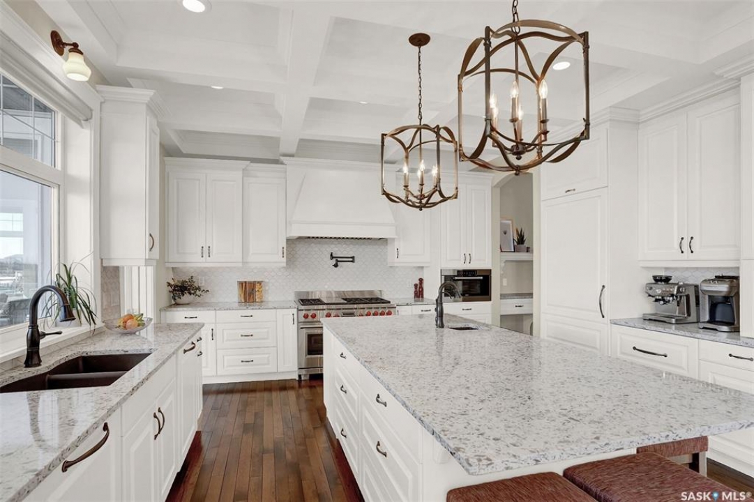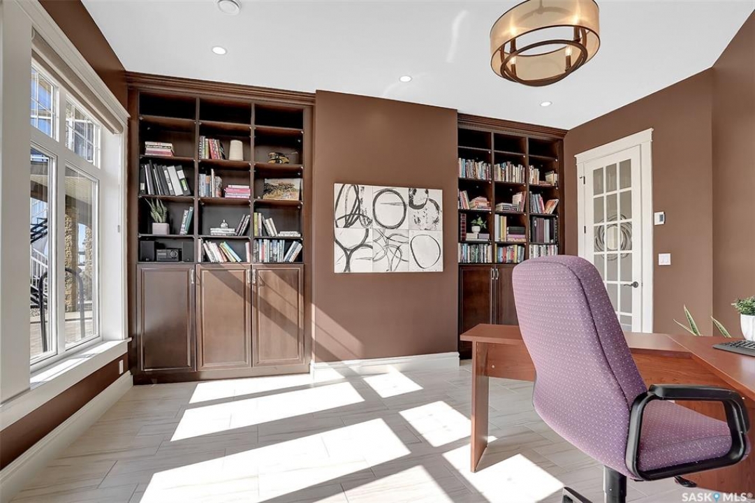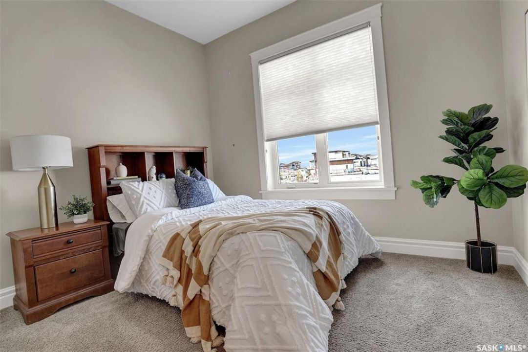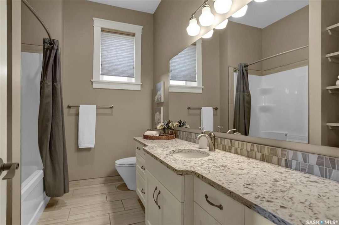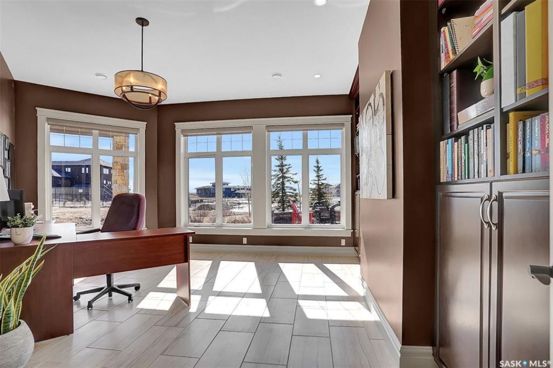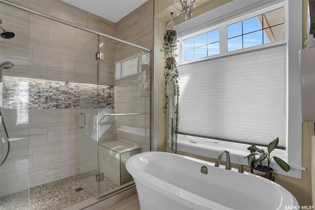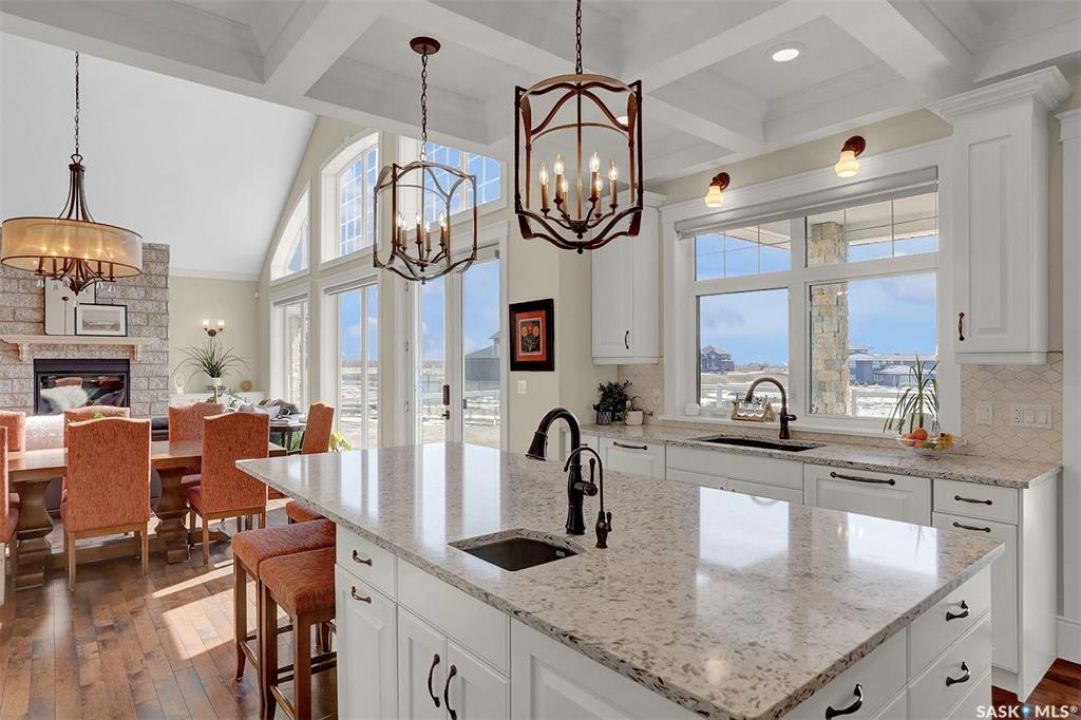 This extraordinary custom built walkout bungalow in Spruce Creek Estates has 6,096 sq' of living space, including a 2,926 sq' walkout basement & 244 sq' 3-season sunroom. The grand foyer features herringbone pattern tile and leads to the great room with 19' vaulted ceiling, Tyndall stone gas fireplace and huge southwest-facing windows that showcase stunning views of the professionally landscaped yard and community lake. Hickory hardwoods lead into the dream kitchen with a coffered ceiling, loads of cabinetry, quartz countertops, and a sit-around island with prep sink. Home chefs will adore the Wolf dual fuel 6 burner range and steam oven, Sub-Zero fridge and freezer drawers, 2 Bosch dishwashers, pot filler, & huge walk-in pantry. The sunroom is perfect for relaxing and is connected to the covered deck. The master suite is a private getaway with a separate covered deck, lake view and a spa-like ensuite. The walk-in closet features an island and is conveniently located next to the laundry room. Completing the main level are 2 more bedrooms, a 4-piece bath, a � bath (all baths with in-floor heat), a large mudroom with custom lockers and a music room. The walkout level is bright with continuation of the 10' ceilings from upstairs, large windows, in-floor heat, and a gas fireplace. Watch a game while enjoying the walk-up wet bar and beautiful wine room. You'll enjoy doing work in the office with built-in cabinetry and more lake views. When your gym workout is done you can exit directly to the covered patio with space for a future hot tub. Two large bedrooms, a 4-piece bath, play room, and more complete this amazing walkout level. Garage enthusiasts will love the two 28x32' garages with large overhead doors perfect for boat/RV storage, in-floor heat, hot & cold water, and drain pits to the outside. Also featured throughout the home are Hunter Douglas blinds and Savant home automation. Your oasis awaits, and it's only 22 minutes from downtown Regina.