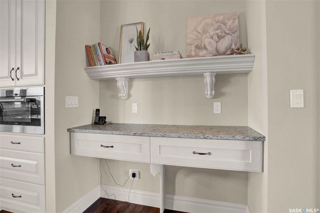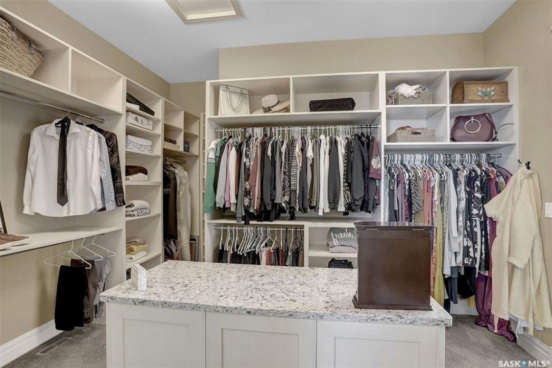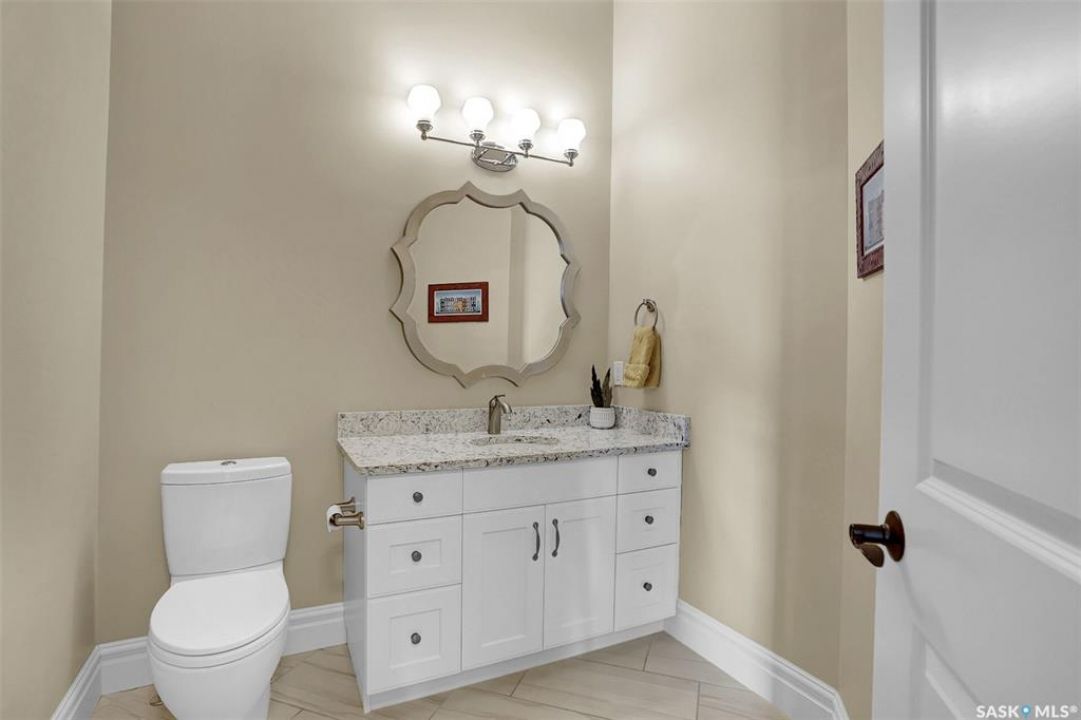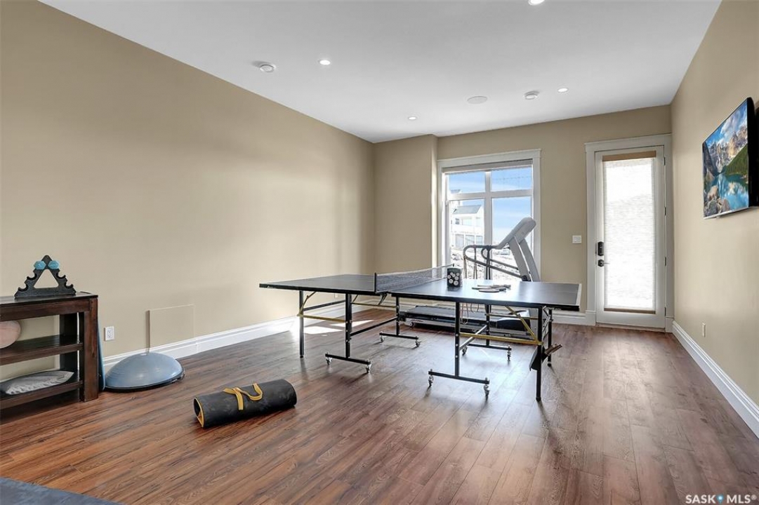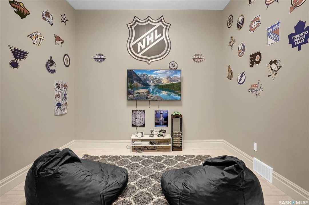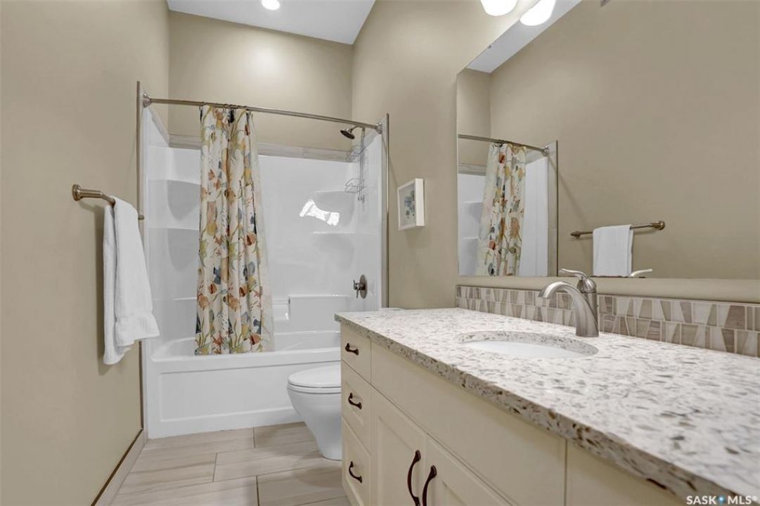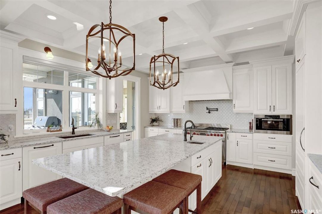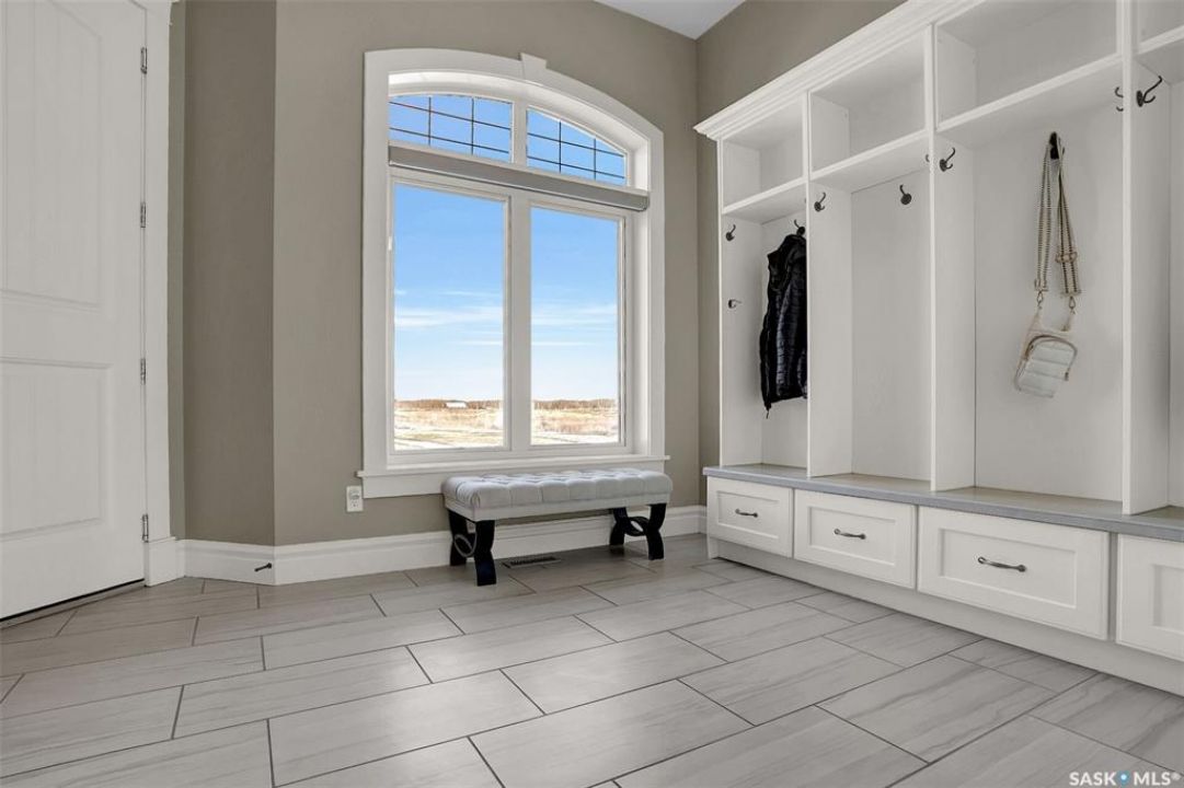 This extraordinary custom built walkout bungalow in Spruce Creek Estates has 6,096 sq' of living space, including a 2,926 sq' walkout basement & 244 sq' 3-season sunroom. The grand foyer features herringbone pattern tile and leads to the great room with 19' vaulted ceiling, Tyndall stone gas fireplace and huge southwest-facing windows that showcase stunning views of the professionally landscaped yard and community lake. Hickory hardwoods lead into the dream kitchen with a coffered ceiling, loads of cabinetry, quartz countertops, and a sit-around island with prep sink. Home chefs will adore the Wolf dual fuel 6 burner range and steam oven, Sub-Zero fridge and freezer drawers, 2 Bosch dishwashers, pot filler, & huge walk-in pantry. The sunroom is perfect for relaxing and is connected to the covered deck. The master suite is a private getaway with a separate covered deck, lake view and a spa-like ensuite. The walk-in closet features an island and is conveniently located next to the laundry room. Completing the main level are 2 more bedrooms, a 4-piece bath, a � bath (all baths with in-floor heat), a large mudroom with custom lockers and a music room. The walkout level is bright with continuation of the 10' ceilings from upstairs, large windows, in-floor heat, and a gas fireplace. Watch a game while enjoying the walk-up wet bar and beautiful wine room. You'll enjoy doing work in the office with built-in cabinetry and more lake views. When your gym workout is done you can exit directly to the covered patio with space for a future hot tub. Two large bedrooms, a 4-piece bath, play room, and more complete this amazing walkout level. Garage enthusiasts will love the two 28x32' garages with large overhead doors perfect for boat/RV storage, in-floor heat, hot & cold water, and drain pits to the outside. Also featured throughout the home are Hunter Douglas blinds and Savant home automation. Your oasis awaits, and it's only 22 minutes from downtown Regina.