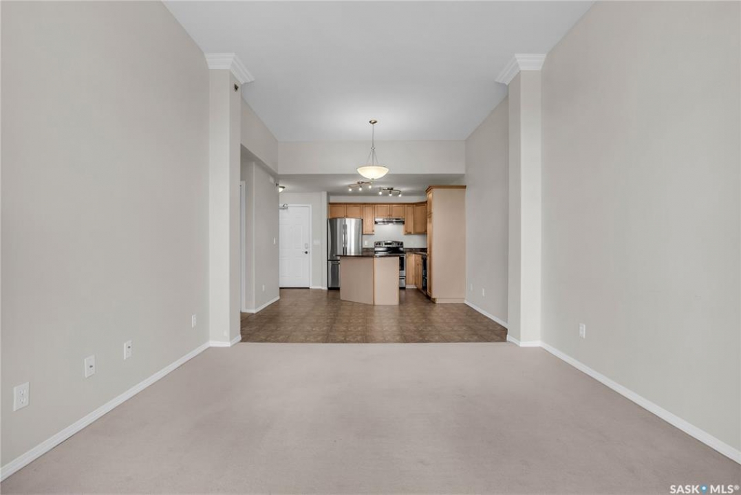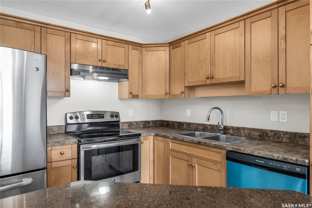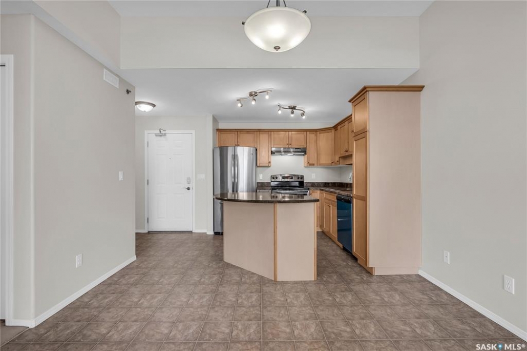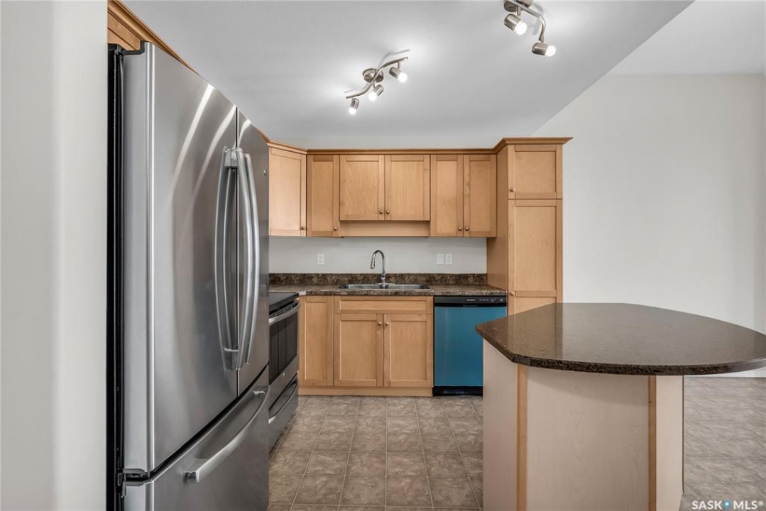 Welcome to unit #414 – 235 Herold Terrace, in the beautiful neighborhood of Lakewood! Conveniently close to many shopping centers, parks, walking trails, bus stops, dog park, and easy access to Circle Drive! Stepping inside your top floor unit, you are greeted with an abundance of natural light flowing throughout. The kitchen provides you with stainless steel appliances, including fridge, stove, dishwasher and hood fan, maple cabinets, pantry and island for additional counter and cabinet space. The living room features 10ft ceilings, a large window and access to your East facing balcony. Coming to the primary bedroom, offering a walk-in closet with custom organizers, and a 3-pc ensuite with sliding glass shower. One additional bedroom, a 4-pc bath, and in-suite laundry room complete this very well-kept home! Additional features include A/C, central vac, and two surface parking stalls! This stunning condo is a must-see in a highly sought after location!