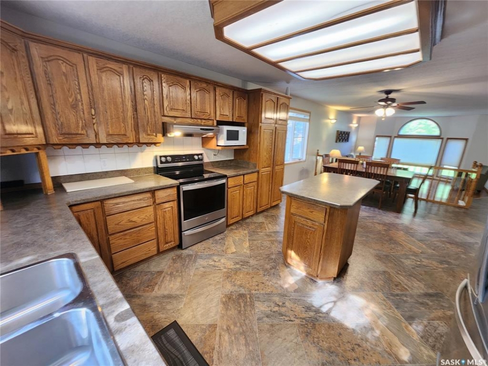 This property is over 1500sqft, has a double attached garage as well as a detached 16' x 28' garage and is located in the quiet community of Lampman. You enter the home directly into a large foyer. The living room is bright, inviting, has beautiful laminate flooring and opens to the spacious dining room. The kitchen boasts ample cabinetry, an island, and stainless steel appliances. � The open concept lends itself well to entertaining with the expansive dining room being open to the kitchen as well as living room. � Just off the kitchen is the laundry closet as well as extra storage closets with direct garden door access to the deck. The master bedroom is super spacious and includes a 3 piece bathroom and large double closets. Two more bedrooms, and a lovely 4 piece bathroom completes this level. The basement includes an expansive family room with wet bar and wood burning fireplace, a bedroom, an office, den, storage room and utility room. The yard is stunning with matures trees, metal fence and large composite deck. This is the perfect family home! Call today to book a showing.