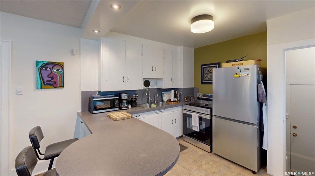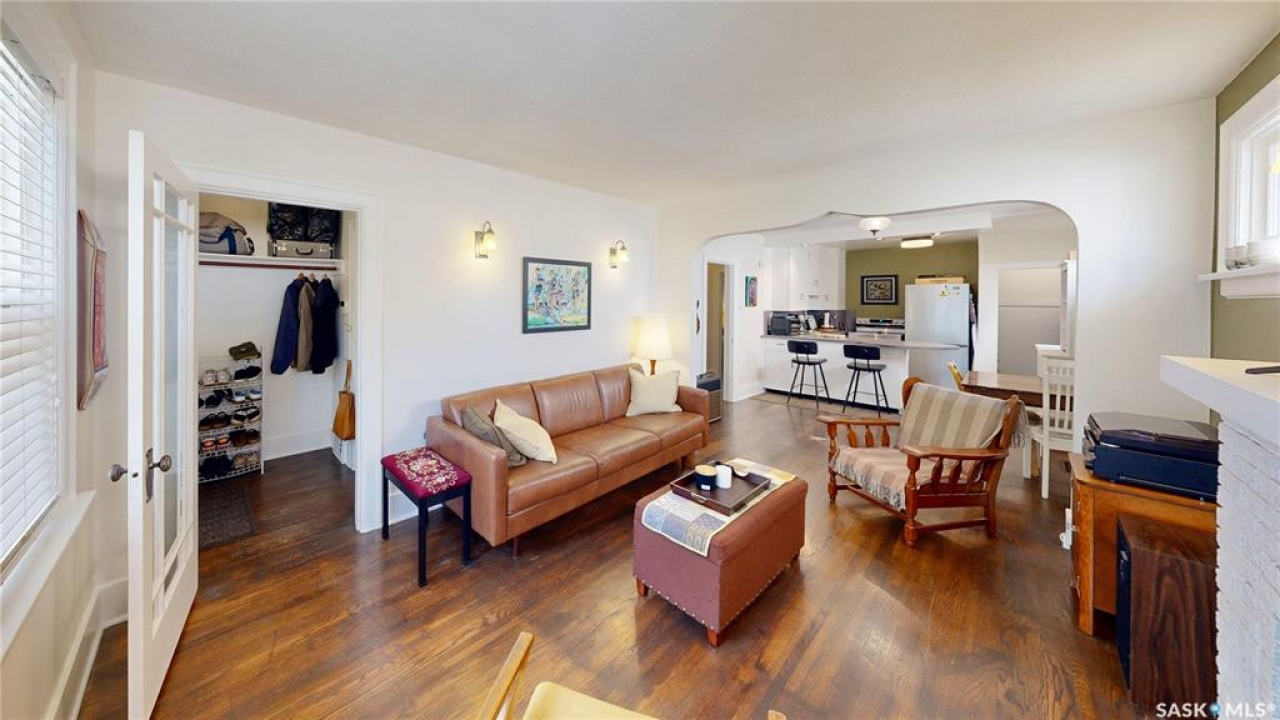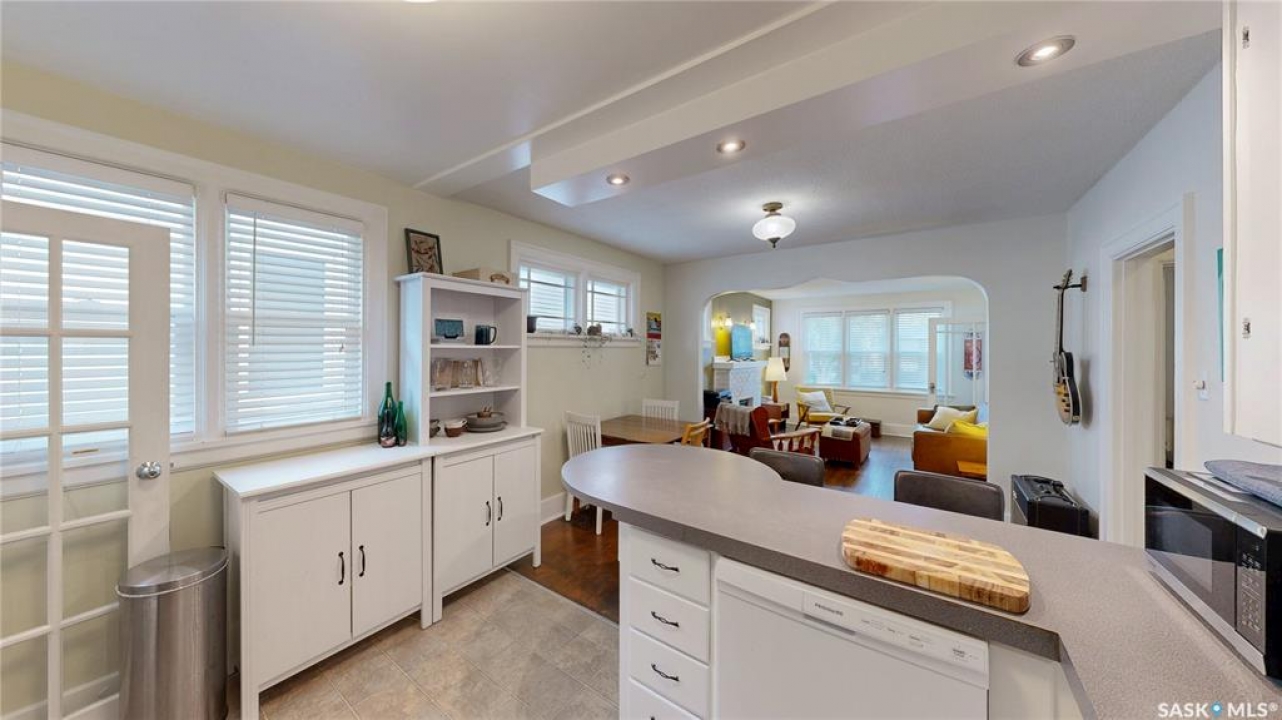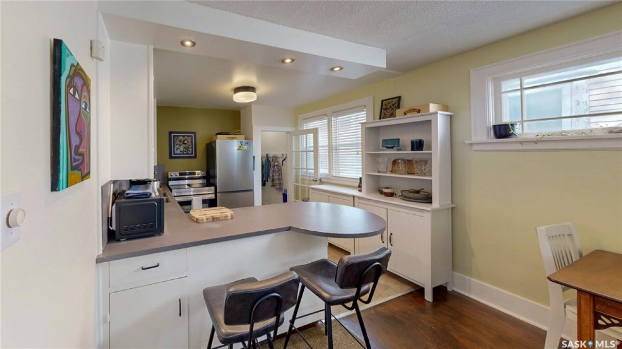 Welcome to 1040 Montague Street! This 1929 built bungalow has some original character and charm with some smart modernizations. The home is 796 square feet in size and has 2 bedrooms with room for future development in basement. It sits on a 25' x 125' rectangular lot that has rear lane, and is close to Sacred Heart School, Grassick Playground Park, and multiple bus routes. The front yard showcases a lawn and mature tree. The backyard is fully fenced with a tall privacy fence for tranquility and solitude. There are unique, towering trees, a patio for a table and chairs, a lawn area, raised garden boxes, an included storage shed and space at the back for keeping a vehicle as the back gate has large double doors. Inside the home, you're welcomed into a foyer area and into an inviting living room that has beautiful hardwood floors, several wall sconces, a fireplace feature and multiple bright windows. Adjacent to the living room is a dining area also with hardwood flooring that then connects to a kitchen that has a long countertop with bar seating and linoleum flooring. The fridge, stove and dishwasher here are all included. Next is the cute 4 piece bathroom with tiled tub surround and a patterned tile backsplash running behind the vanity and along the walls. Finishing off the main floor are two bedrooms that both have hardwood floors and closet space! Downstairs, the partially finished basement begins with the laundry area that includes the washer and dryer. There is ample storage space and even a workshop area down here. To the other side sits a sizeable recreation room area that could be made into additional bedroom space if required.