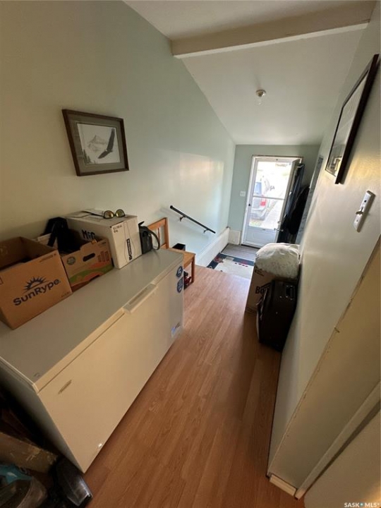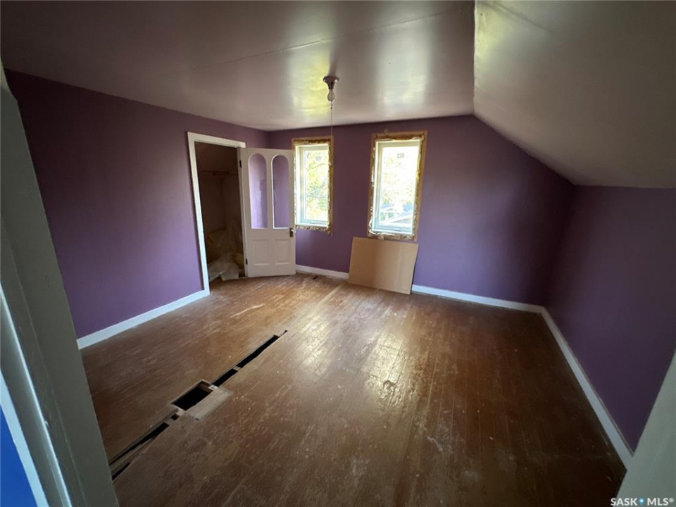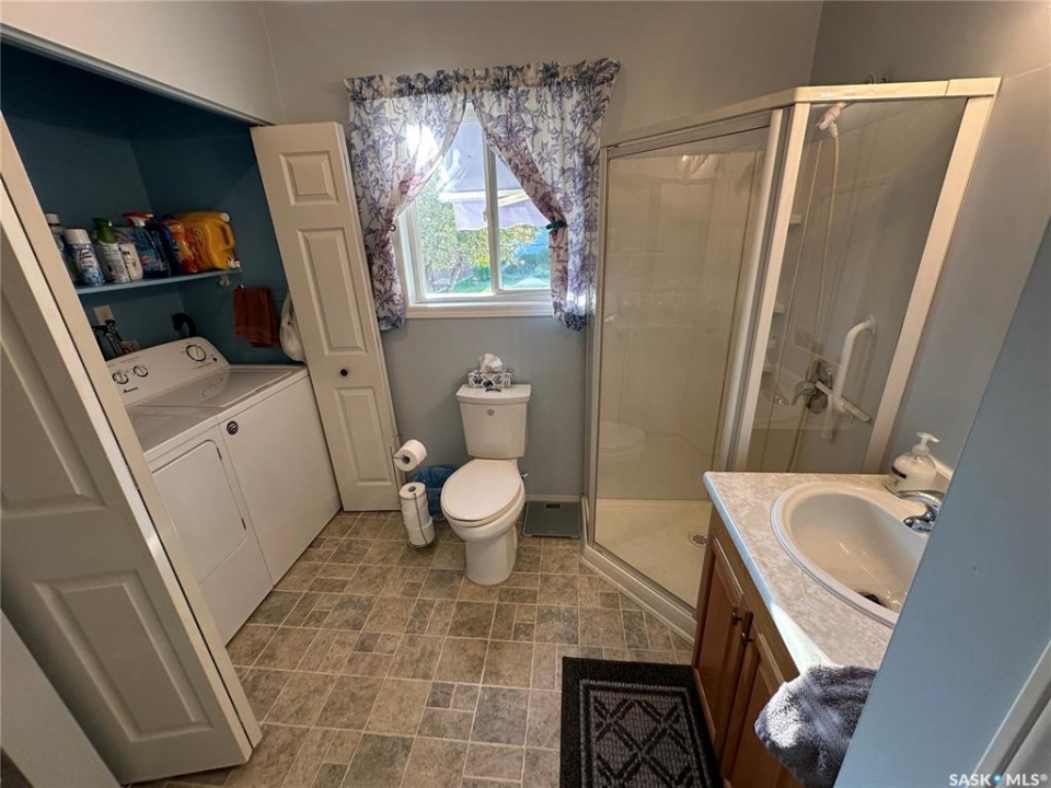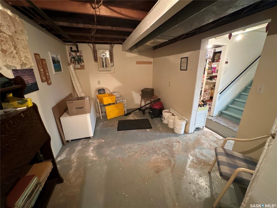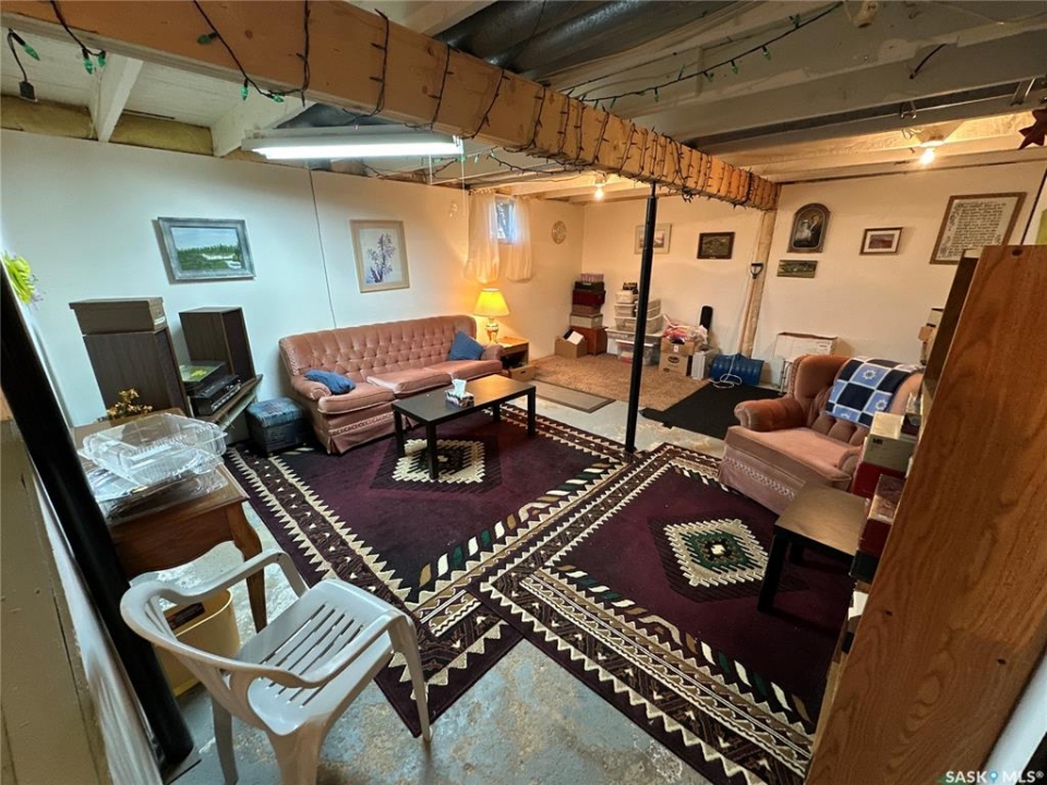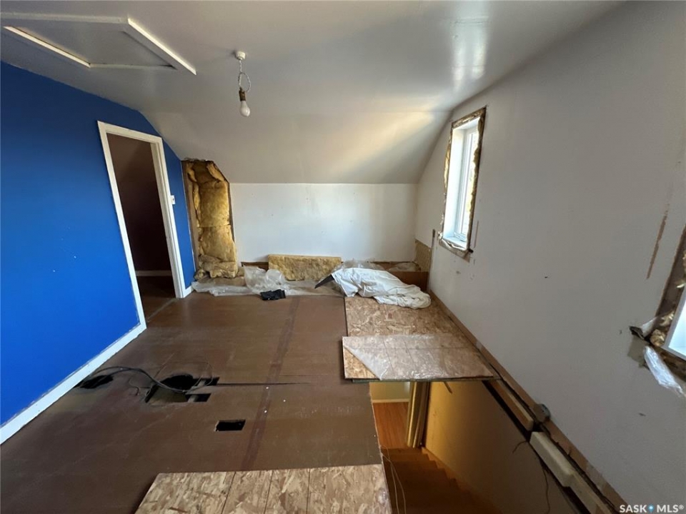 Great location in Rosthern. 1272 sq ft 1 1/2 storey house on a large 55' x 207' lot in Rosthern with room for a rear garage with access from the front drive or the back alley! Wider stairs lead up from the entrance to the main floor that was extensively renovated in the past. Newer wiring & insulation, windows & siding with styrofoam insulation underneath, kitchen & main floor laundry/bath with a tub and a shower. The main floor also has a large living room and a second dining room. A wide stairway also leads to the very functional basement which has a large family room, a storage room, den or office space, and a 1/2 bath in the utility room. Again wide stairs lead to the second floor which remains un-renovated with a large bedroom and a family room that together could be converted to two nice bedrooms.
