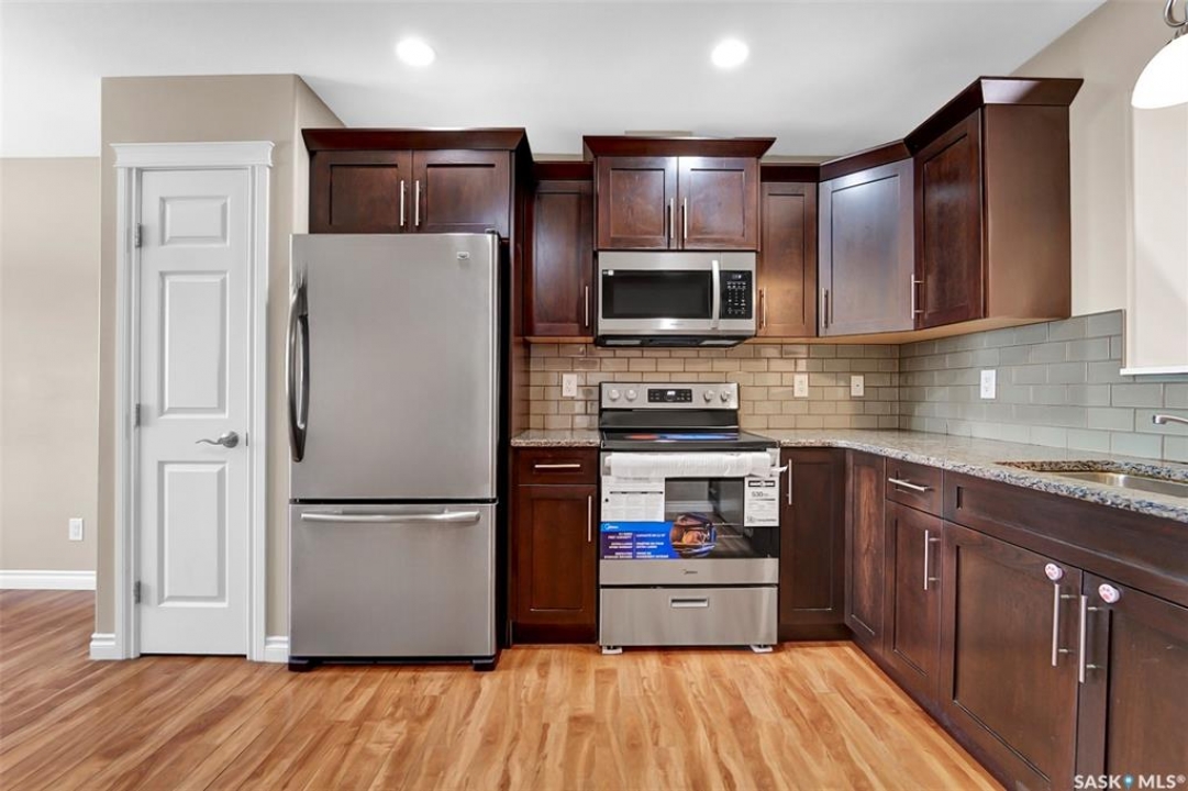 Spacious 3-bedroom, 4-bathroom End Unit townhouse in a prime location, complete with an attached garage. This 1634 sqft end unit offers exceptional natural light and stylish design. The living room boasts 12' ceilings and opens directly to your deck. The second floor features an open-concept kitchen with granite countertops and glass backsplash, brand-new appliances (stove and over-the-range microwave), and a spacious dining area. Also, you will find a 2-piece powder room for your convenience. The top floor boasts three generously sized bedrooms. You will find a decent-sized walk-in closet and a 4-piece en-suite off the master bedroom. The fully finished basement offers a huge family room and another full 4-piece bathroom, providing space for guests or recreation. This home is just steps from schools, restaurants, gas station, grocery stores, shopping centers, and all amenities, with easy access to Circle Drive South. Don't miss it. Shows 10/10. Call your REALTOR for a private viewing.