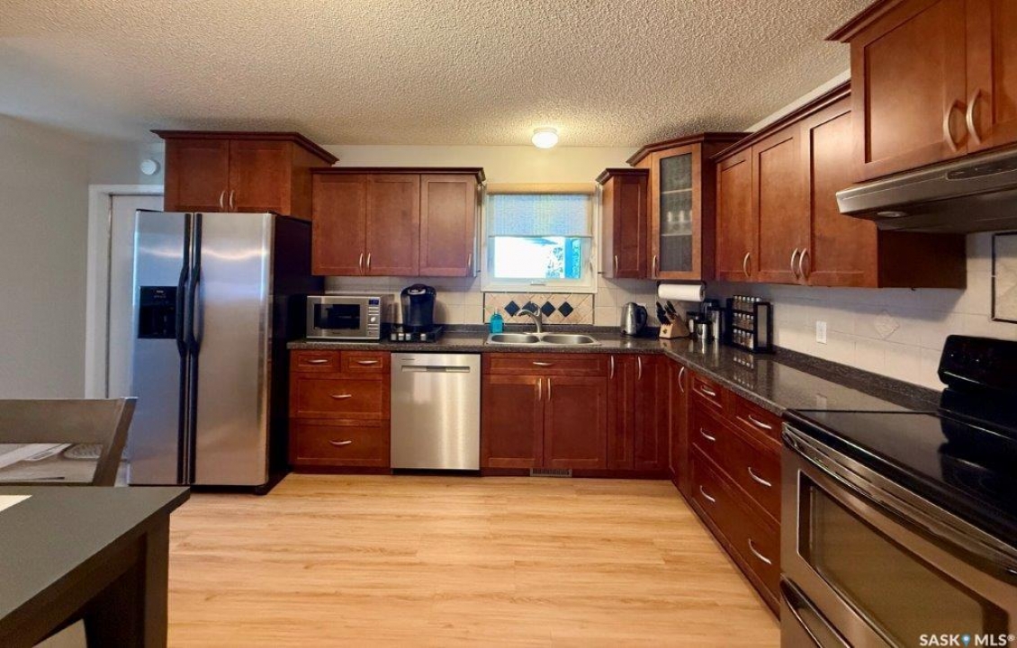 This well-maintained bungalow offers 1304 sq. ft. of living space with 5 bedrooms and 3 bathrooms, along with a heated single attached garage. With only two owners since it was built, the current owners have lovingly cared for this home for the past 39 years, completing numerous updates along the way. Step inside to a welcoming foyer with access to the living room, kitchen, or attached garage. The living room is open to the dining area, creating a comfortable flow for family living and entertaining. The kitchen provides plenty of cabinetry, counter space, and room for a kitchen table. Down the hall, you'll find three bedrooms and a 4-piece main bath, including a primary suite with its own 3-piece ensuite. The fully finished basement adds a spacious family room with a games area, two additional bedrooms, a 3-piece bathroom, a large storage room, and a utility/laundry space. Enjoy the outdoors in the beautifully landscaped yard. The front yard is well cared for, and the fully fenced backyard features a private patio, plenty of green space, and mature trees for shade and privacy. Recent updates include: Shingles (2020), Energy-efficient furnace (2015), Main floor flooring, doors, and trim (2016, excluding bedrooms) , Bathroom updates (2018/2019), Kitchen renovation (2010) , Main floor bedrooms and kitchen window (approx. 10 years ago), Hot water heater (3 years ago), Cement driveway (4 years ago). This home is truly move-in ready and offers plenty of space for the whole family. Call today to book your showing!