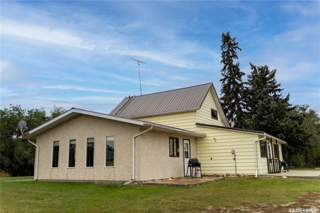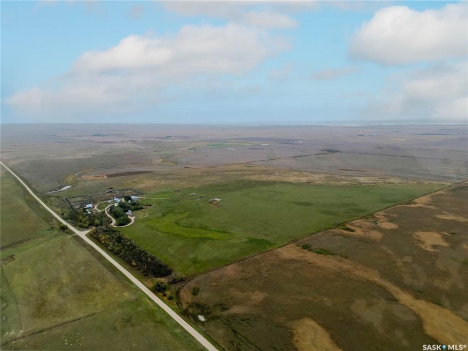 Opportunity knocks in the Holdfast, SK area — a nicely configured ranching yard site on one quarter section of mixed-use land in RM of Sarnia #221. Ideal for expanding your cattle operation or starting a hobby ranch, this property combines infrastructure, reliable water, and prairie charm. Located on the west side of Last Mountain Lake, it also offers great nearby recreation. SAMA field sheets report 125 cultivated acres, currently in tame hay but suitable for crop production. The land is partially fenced with 4-strand barbed wire in excellent condition; about 57 acres are not yet fenced and could add grazing capacity. Water is key, and this property is well supplied with an artesian well, another water well, and two spring-fed dugouts. The 1,800 sq ft home, built in 1915, has been very well cared for and offers 4 bedrooms, 2 bathrooms, a spacious living room, south-facing rec room, and a private primary bedroom tucked away from the main living area. The yard is sheltered by mature trees and well arranged for mixed farming. Outbuildings include: 40x56 quonset with power, 78x42 pole shed, 36x58 barn, butcher house with power & heat, 3-car detached garage, smoking shed, well house, and 3 sheds. The artesian well feeds a 400-gallon trough for livestock. Wooden corrals with gates/panels (some included) provide livestock handling. Carrying capacity for fenced land is ~15 head, with potential to increase by fencing ~57 additional acres. If you're looking for more land, two extra quarters are available separately just southwest (SK019387). With infrastructure, water, and proximity to recreation, this is an affordable opportunity to farm and ranch in a productive area.