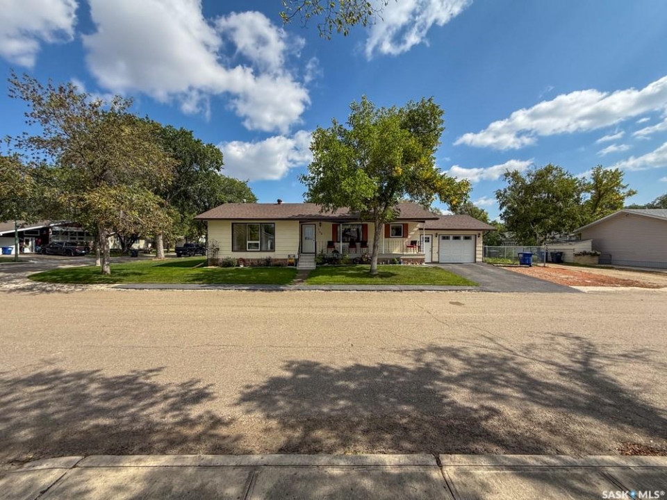 Welcome to 568 Poplar Crescent in the vibrant community of Shaunavon! This 1,328 sqft bungalow offers a welcoming layout and fantastic entertaining spaces. Step onto the covered front porch — the perfect spot for a peaceful morning coffee. Straight through the front door, you'll find 3 of the 4 main-floor bedrooms, all well-sized and conveniently located next to the updated 4-piece bathroom. To the left of the entry is the sunny living room with large windows that bring in an abundance of natural light, while to the right is the dining area and kitchen, where you'll appreciate the functional layout and easy flow of space. Just off the kitchen is the 4th bedroom or home office — featuring its own 2-piece ensuite and garden doors that lead to a backyard deck ideal for summer BBQs or evening drinks. Downstairs, the fully developed basement is ready for entertaining, offering a spacious rec room with a show-stopping wet bar at one end and a cozy wood-burning fireplace at the other. One additional bedroom, a 3-piece bathroom, a den/storage room, laundry/utility room round out the lower level. The backyard is fully fenced and thoughtfully designed with a deck, 8x8 shed, garden area, and underground sprinklers in the front and side yard. The home also includes a single attached garage, a well-maintained furnace with regular servicing, a 100-amp panel, and a water heater from 2019. Located in a friendly, welcoming town with schools, parks, shops, and recreation close by, Shaunavon offers small-town charm with all the essentials. Whether you're starting out, growing your family, or looking for a move-in ready place with room to breathe — this is a home that delivers.