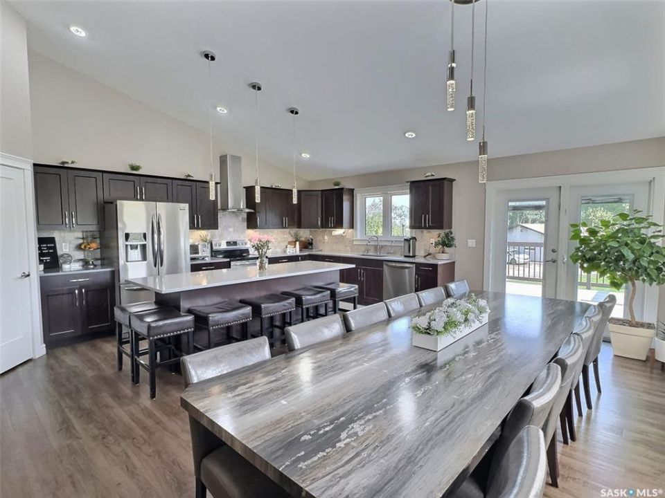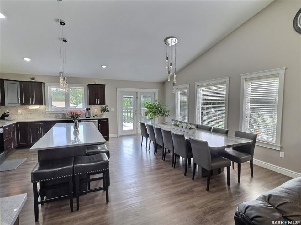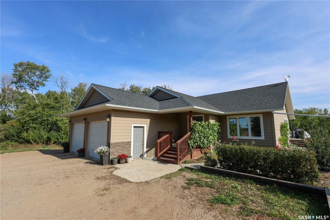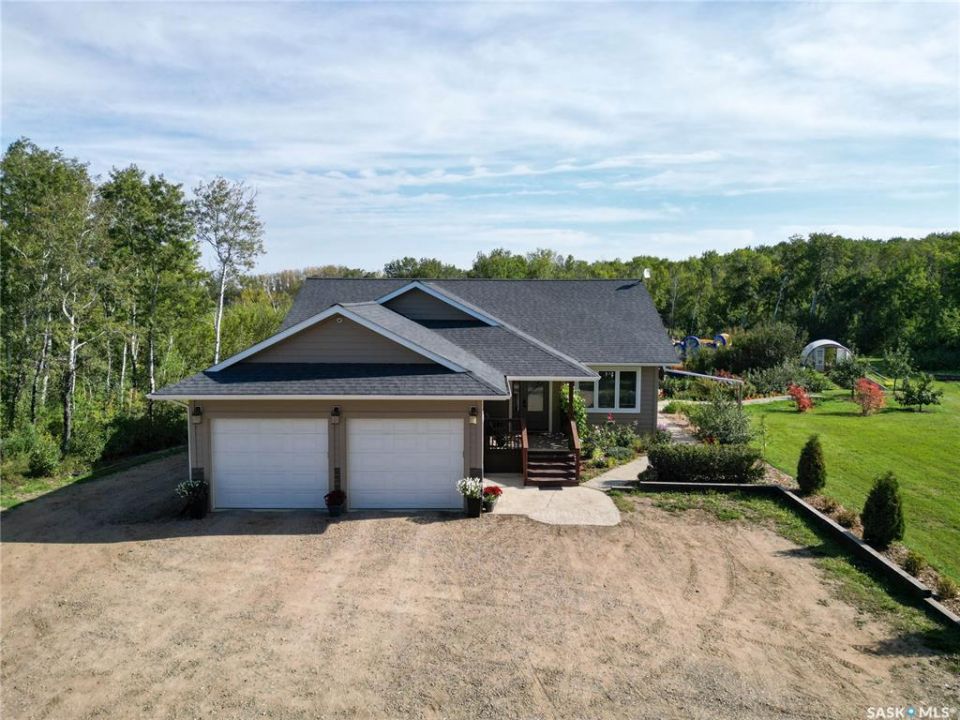 Are you looking to get away from the hustle of the city for a slower, more self sustaining lifestyle but still want the convenience of a modern home and close access to the larger centers? You better take a look at this stunning 5 bedroom, 3 bathroom bungalow that has over 3500 sq/ft of living space on 2 acres north of MacDowall. The main living space is bright and inviting with its vaulted ceilings, led pot lights and large windows allowing an abundance of natural light. The open concept kitchen features more vaulted ceilings, stainless steel appliances, large walk in pantry, quartz counter tops and a massive feature island with breakfast bar seating that blends perfectly with the large dining room adjacent that gives access to the large deck in the back of the home. The spacious master bedroom includes a 4-peice en-suite with marble tile as well as a large walk in closet. Two sizeable bedrooms, a beautiful 4 piece bathroom featuring marble tile floors and a tiled tub & shower, and a large, walkthrough mudroom close to the attached garage access completes the main level. Downstairs the family room is warm and spacious thanks to a wood fireplace with tasteful stonework, and built in shelving and mantle as well as 9 ft ceilings. Completing the lower level are 2 large bedrooms, 3 pc bathroom with custom tile work, galley style large laundry room, mechanical room and cold storage room. Directly out of the walkout basement is a covered patio area with beautifully landscaped flower beds and stone steps leading to the front, firepit, in ground trampoline and large play structure . The rest of the yard is a self sustaining dream, with a large garden space and greenhouse, wood boiler shed with ample supply of firewood, chicken coupe area, large 24x32 heated shop as well as a 20x30 cold storage building. The property has been exceptionally landscaped and cared for and pride of ownership is evident throughout the home and yard and must be seen to be appreciated! Call Today!