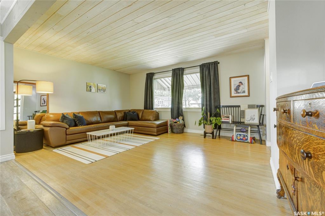 Beautifully Updated Bungalow in Richmond Heights! Nestled in the desirable, tree-lined community of Richmond Heights, this fully updated bungalow offers the perfect blend of modern comfort and convenience. Ideally located close to the river, downtown, the University of Saskatchewan, SaskPolytech, and with quick access to Circle Drive, this home is a rare find. Featuring 4 bedrooms and 2 bathrooms, the property includes a non-conforming 1-bedroom basement suite with its own laundry—ideal as a mortgage helper or for extended family. One of the upstairs bedrooms has been converted into a convenient laundry room, adding flexibility to the layout. The main floor boasts a stunning kitchen with quartz countertops, stainless steel appliances, and a stylish open feel accented by pine tongue-and-groove ceilings that flow through the living room, kitchen, and primary bedroom. The living room and primary Bedroom are finished with original hardwood floors, creating a warm and inviting space. Outside, you'll find plenty of parking with a driveway that accommodates 3 vehicles, plus a double detached garage featuring a floor drain, a work bench and built-in exhaust fan—perfect for hobbyists or those who appreciate a functional workspace. With every detail inside updated within the past five years, this home is move-in ready and located in one of Saskatoon's most sought-after areas.