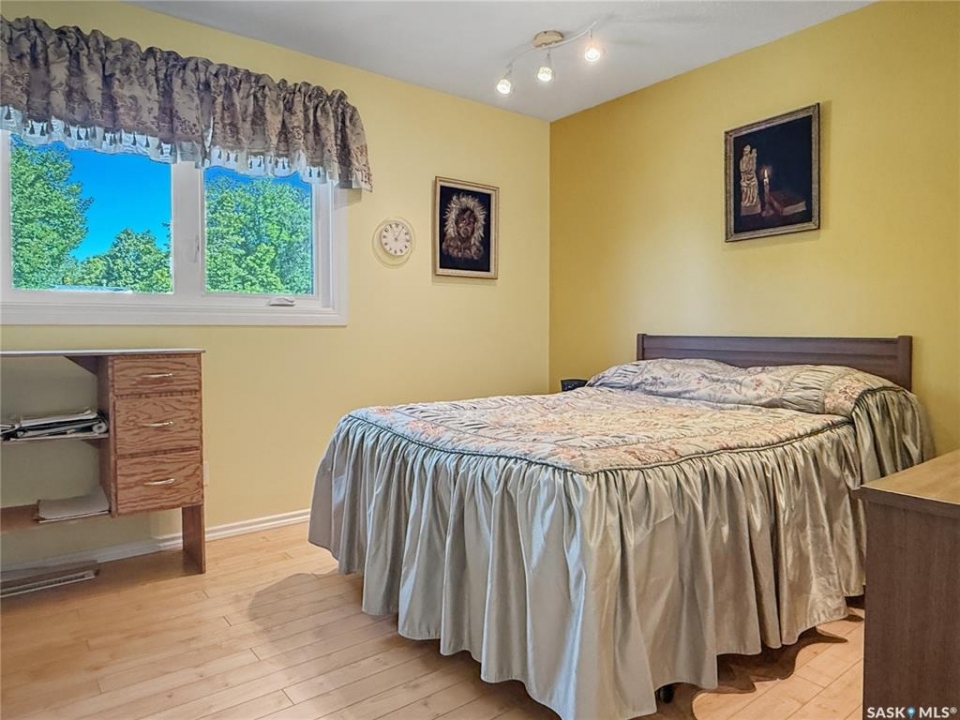 Location Location Location! This 4 bedroom, 2 bathroom home, perfectly situated along a park and walking trails, has been lovingly cared for by the same family for over 30 years, and it shows! Immaculate inside and out, this move-in ready property offers peace of mind with numerous big-ticket upgrades already completed. Step inside to a spacious living room with large windows that fill the home with natural light. Newer laminate flooring flows throughout, creating a clean and modern look. The bright kitchen has been updated with newer cabinetry, providing plenty of storage and functionality. Upstairs you'll find two generous bedrooms with double closets, along with a fully updated 4-piece bathroom. The lower level mirrors the same thoughtful layout, offering two more bedrooms, a beautifully updated 3-piece bath with tiled walk-in shower, and a comfortable rumpus room. The exterior is just as impressive, with a landscaped backyard featuring mature trees, shrubs, a concrete patio for entertaining, and additional rear parking. The fully insulated garage keeps your vehicle protected year-round. Major updates include: newer windows throughout, shingles, high-efficiency furnace, central A/C, underground sprinklers, updated interior and exterior doors, and fresh paint inside and out. This home truly is the full package! Meticulously maintained, full of upgrades, and perfectly suited for a family. Don't miss your chance to make it yours!