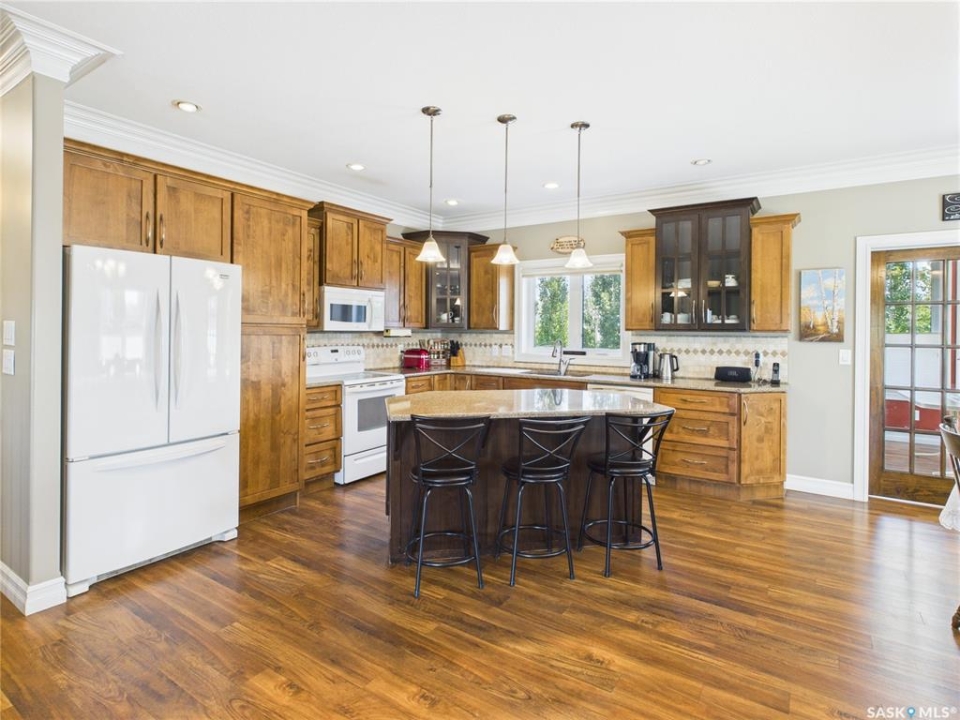 Tucked away in a quiet pocket of Birch Hills and a short 20 minute drive from PA, this 1,492 sq ft gem offers all the space a growing family could want - with no neighbors across the street but a peaceful field to greet you each morning. Inside, you'll find 4 bedrooms, 3 full bathrooms, and charming rustic touches that give the home a cozy, rural feel. The 9-foot ceilings on both levels create a bright and airy atmosphere throughout. The heart of the home? A fully insulated sunroom that flows onto a private deck - perfect for morning coffees or late-night chats under the stars. The backyard is beautifully landscaped with raised flower beds and a built-in seating area, ready for your garden parties or quiet afternoons. The ensuite to the primary bedroom includes a walk-in closet with a clever water closet for extra privacy. Downstairs, the massive rec room is ideal for movie nights, playdates, or the occasional dance-off (no judgment here). Let's not forget the insulated double attached garage, keeping both you and your car warm through our Saskatchewan winters. This home is clean, well cared for, and bursting with potential for your next chapter. Come see why this one feels just right!