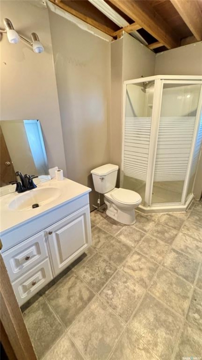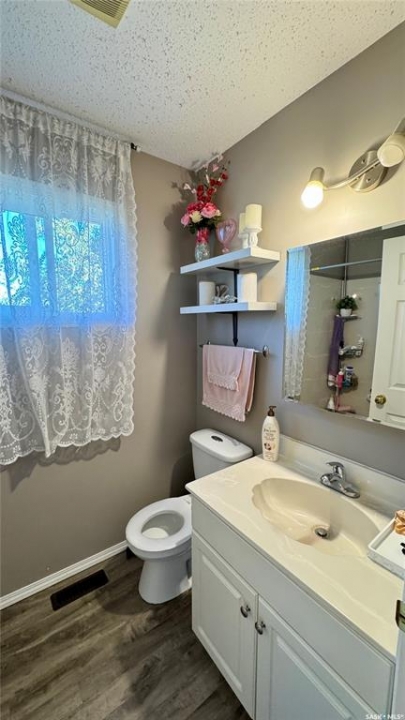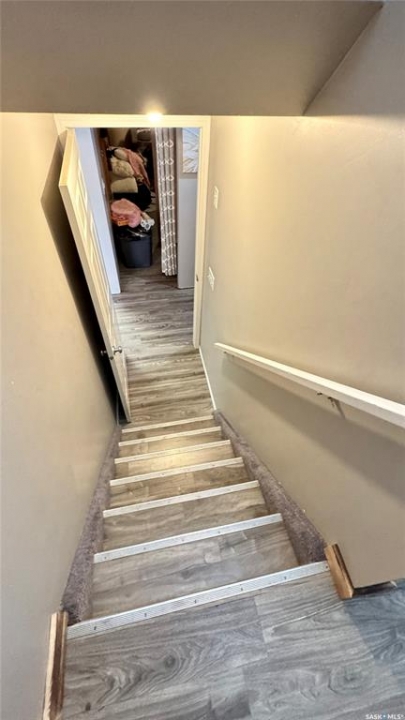 Welcome to 303 4th Street in Dundurn, Saskatchewan. This spacious 984 sq ft bi-level home is located just 30 minutes south of Saskatoon and only five minutes from Blackstrap Provincial Park. Perfect for families, first-time buyers, or anyone looking for more space, this 5-bedroom, 2-bathroom property offers excellent value with room to add instant equity. Set on a 66' x 126' lot, the yard features MATURE TREES, STUCCO SIDING, a METAL ROOF on the house (garage has asphalt shingles), and an OVERSIZED 28' x 24' fully insulated double detached garage. Inside, the bright, functional layout includes a welcoming living room with large SOUTH FACING windows, a kitchen with concrete countertops, white cabinetry, pantry, and stainless steel appliances. The adjacent dining nook opens to the back deck, creating an easy indoor-outdoor flow. Durable laminate flooring is found throughout the home for a clean, modern look. The main floor offers three bedrooms and a full 4-piece bathroom. The fully finished basement adds two more spacious bedrooms, a family room, a 3-piece bathroom, extra storage and laundry/utility space. Recent updates include a washer/dryer, laminate flooring, trim, bathroom fixtures, and the home is equipped with forced-air natural gas heating, an owned furnace, and a gas water heater. Appliances are included, making this home move-in ready. This Dundurn real estate listing backs onto open fields for peaceful prairie views while keeping you close to Saskatoon and Blackstrap Provincial Park. A rare opportunity to enjoy small-town living with modern convenience!
