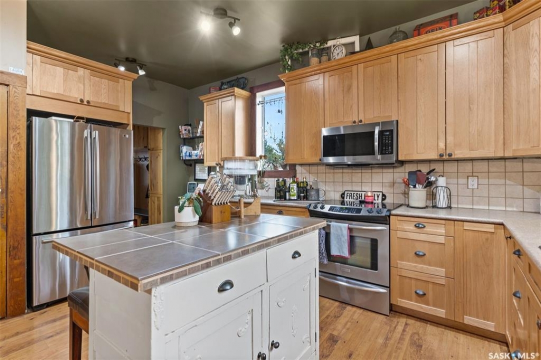 Welcome to this one-of-a-kind Eaton's character home, where classic charm meets modern living on a picturesque 13-acre estate near Lucky Lake. This meticulously restored property invites you into a world of timeless elegance, from the inviting wrap-around deck to the expansive, tree-lined yard that offers complete privacy and tranquillity. Originally relocated to its current location with a brand-new basement in 2007, this home has undergone extensive updates, including newer plumbing, wiring, and windows, ensuring that the historic beauty remains while offering today's modern conveniences. The spacious kitchen, remodelled with maple cabinetry in 2008, is a cook's dream, perfectly designed for creating memorable meals. The main living area, with large windows and 10-foot ceilings, floods with natural light, offering breathtaking views of the countryside. Upstairs, the primary suite is a peaceful retreat, complete with a cozy loft space, ideal for quiet moments or creative pursuits. The fully renovated basement, with 9-foot ceilings, provides ample space for a home gym, family room, or guest quarters. The updates continue with a high-efficiency furnace (2015) and a 2022 on-demand hot water tank for added comfort. Step outside to experience the full beauty of this property. The covered and uncovered portions of the deck are perfect for savouring the peaceful sounds of nature or watching the sunset over the rolling hills. For those dreaming of country living with modern amenities, this acreage is fully fenced for livestock and features both a pond and a dugout. An old barn and woodworking shed add even more character, while the meticulously tended gardens offer endless potential for the green thumb. With natural gas heating, municipal water, and paved access right to the property, convenience is at your fingertips. Schedule your viewing today and experience firsthand the charm, history, and peace that await you at this extraordinary acreage home!