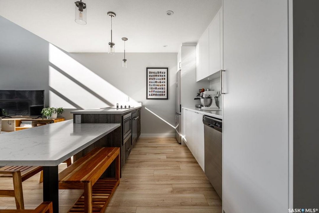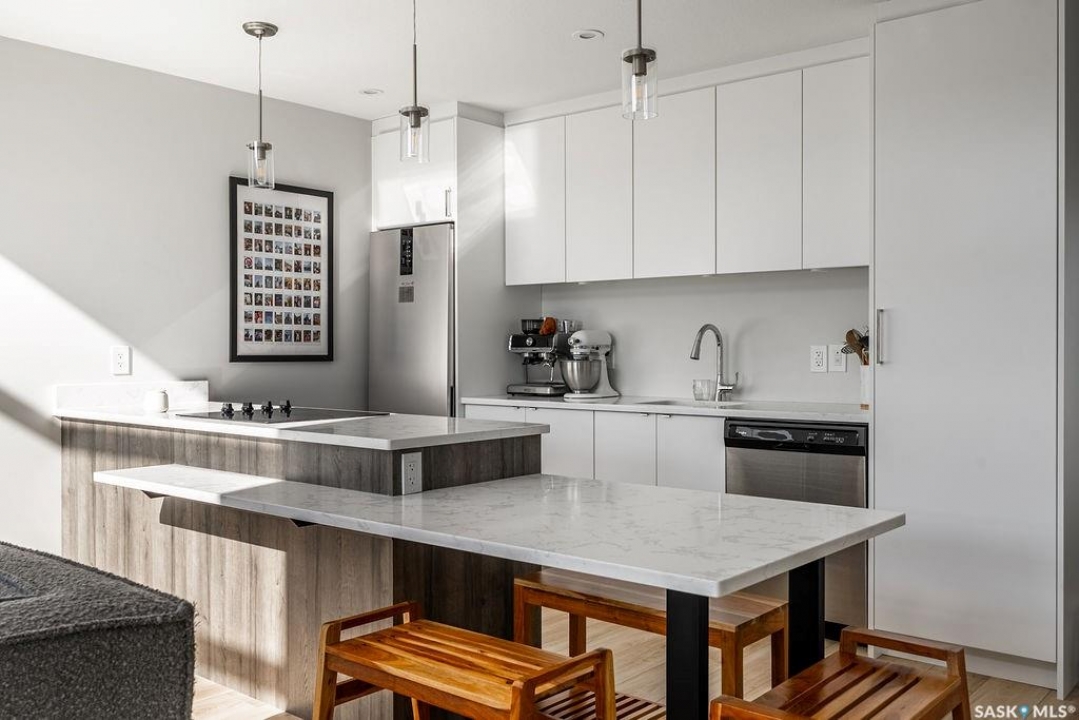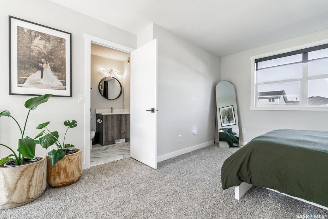 Welcome to 143 Westfield Rd. in Brighton! This stunning 1082 sq. ft. corner townhouse is filled with natural light thanks to expansive floor-to-ceiling windows and southern exposure. The main floor boasts a bright, open-concept design with a spacious living room featuring a full wall of south-facing windows and remote-controlled electric blinds. The kitchen/dining space offers European-style appliances, an oversized eat-up island. Convenient main floor laundry, a two-piece powder room, and a full primary suite with walk-through closet and three-piece ensuite complete this level. Upstairs, a gorgeous loft overlooks the main floor, creating an airy, light-filled retreat. The second primary bedroom features a three-piece ensuite and large walk-in closet. The fully finished basement offers even more living space with a large family room, games/fitness area, a spacious bedroom, and a four-piece bathroom. Enjoy the oversized backyard that comes with this corner lot, fully fenced with no-maintenance PVC, complete with a large deck and beautiful patio—perfect for entertaining. A double detached garage adds convenience. Located in one of Saskatoon's most vibrant neighborhoods, this home is steps away from shops, restaurants, theaters, and all the amenities Brighton has to offer.