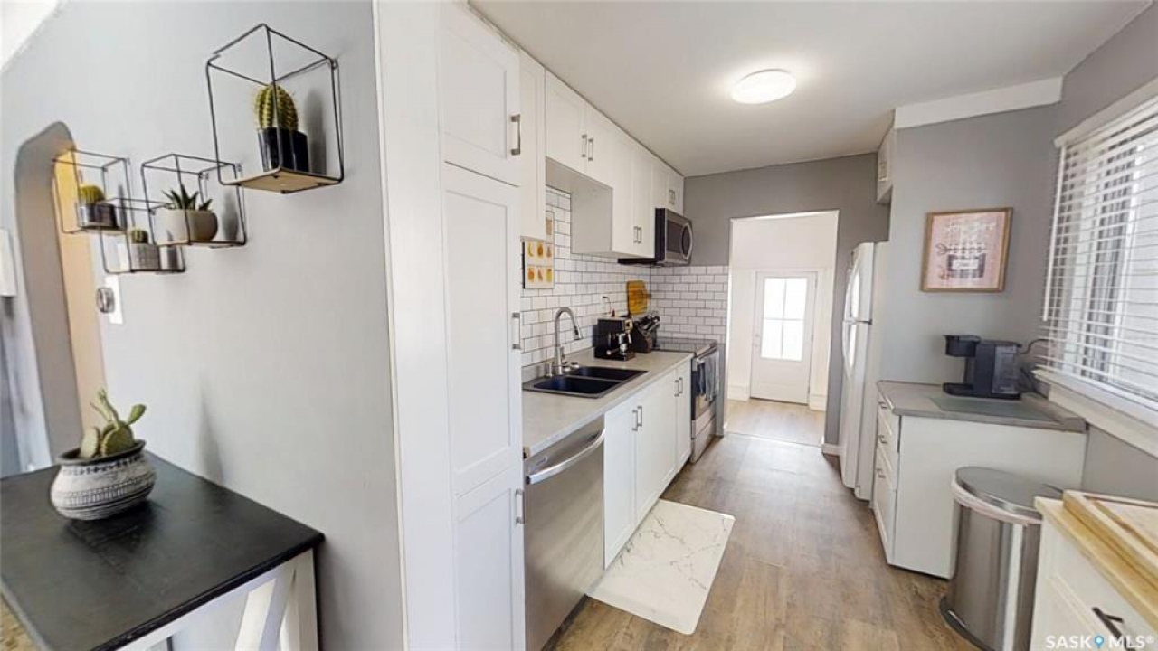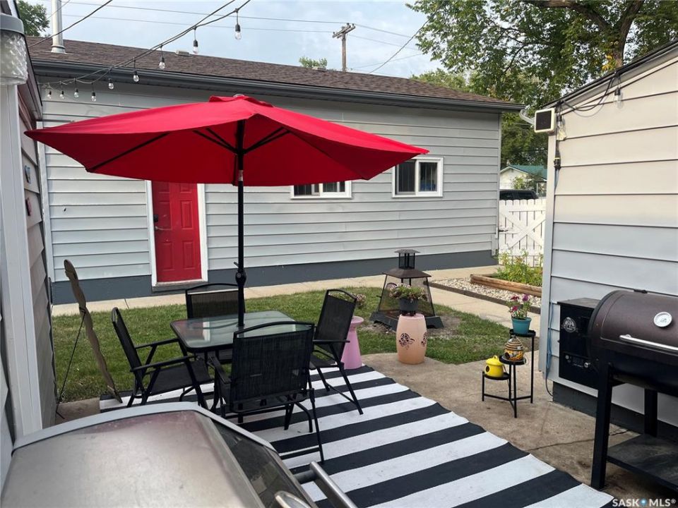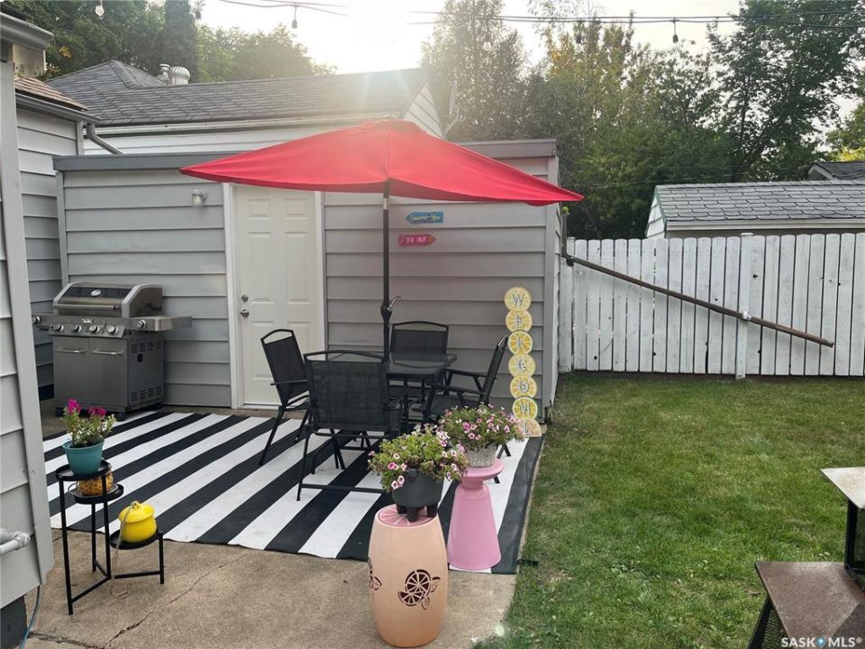 Great little starter house in the Exhibition Area. Lots of recent renovations that include kitchen, bathroom, plumbing, heating and electrical. 28'x30' heated garage in the back yard is a mechanics dream. Lots of off street parking. Nice private back yard for entertaining.