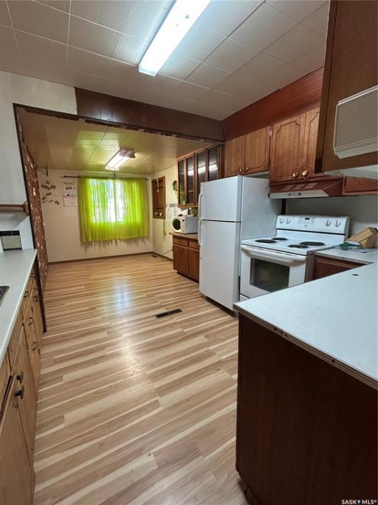 Are you looking for SPACE? Do you Desire a HUGE Shop/Garage? Then let this property be on your List of Possibilities. Built in 1957 this Unique house offers 3 bedrooms and 2 bathrooms PLUS Endless possibilities with all of the extra square footage from the Converted Garage (now Recreational Room). Upon entering you'll enjoy the convenience of main-floor laundry which leads into the kitchen/dining room space then the very sizable Livingroom facing the sunny south side. The basement is for Utility use and has a fairly new energy efficient furnace and water heater. The SPECIAL PRIZE with This property is the Excellent heated SHOP/Garage which is stand-alone and facing the back alleyway. Located on King Street is also an added bonus as it is close to all Mall amemities etc.