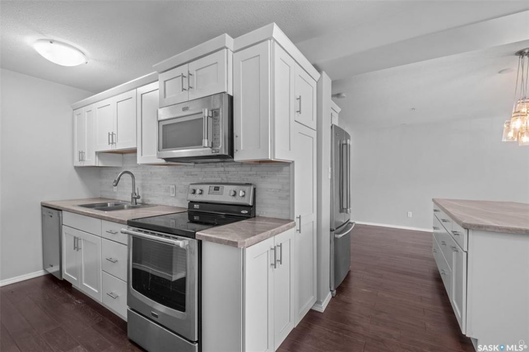 Cute, cozy and safety matters put in place! This affordable, newly painted one-bedroom condo, not only offers affordability but also a quiet building with a modern feel. Enjoy an open kitchen/dining/living room area and a large bedroom with a walk in closet. This sweet little condo is completely turn-key and offers a parking space directly under the south-facing deck, so you can keep an eye on your vehicle. The condo board takes your safety seriously with exterior door locking policies in place and cameras for a watchful eye. This condo is in a convenient location; walking trails along the river, amenities in the Cornerstone business district and the Sask Polytech building is all nearby. Whether you are a student or looking for a revenue property, this condo might just be the perfect place for you.