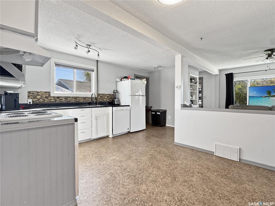 Nestled in a peaceful neighborhood, this adorable two-bedroom, one-bathroom home offers 752 square feet of cozy comfort. The main floor features a bright living area and a stylish kitchen with beautiful white cabinets and modern conveniences that make meal prep a breeze. The bathroom showcases a beautifully tiled tub surround, while the basement, partially finished with a subfloor and roughed-in bathroom, offers endless potential for expansion. Thoughtful updates throughout provide peace of mind, including a completely redone electrical system (2021), plumbing updates, windows (except 1 in porch), renovated porch (2019), renovated master bedroom (2021), and upgraded furnace (2005). The insulated double-car garage, brand-new washer and dryer, and landscaping improvements round out this well-maintained home. Affordable utilities average $80/month for power and $60/month for energy, with water, garbage, sewer, and recycling billed every two months at approximately $200. With its combination of charm, modern updates, and potential, this home is perfect for first-time buyers or anyone seeking a comfortable, move-in-ready property. Schedule your viewing today!