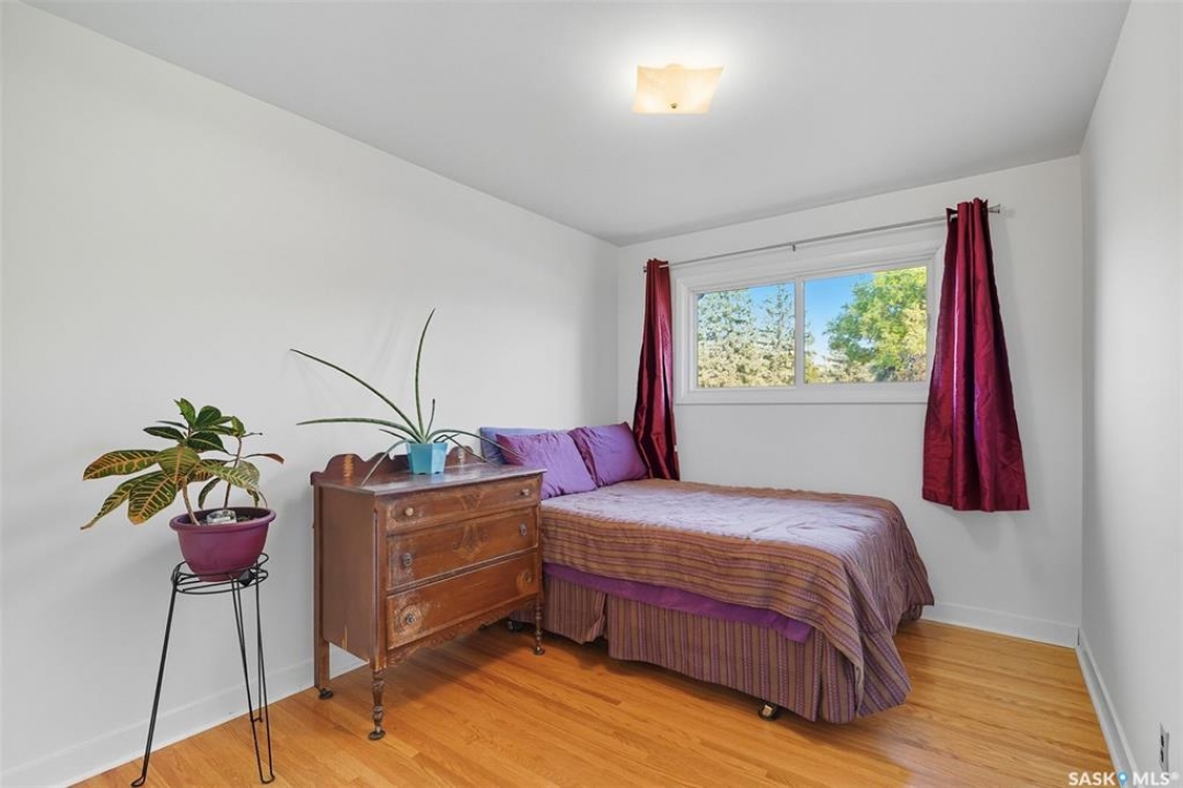 Looking for a home in the desirable Holliston neighbourhood? This 1,041 sq/ft bungalow is the perfect blend of character and updates, offering comfort, convenience, and excellent potential. The Main floor features 3 Bedrooms & 1 Bath, Original hardwood floors throughout much of the home with an Updated kitchen and bathroom for modern style and function Newer windows and shingles plus a fresh coat of paint, making this home move-in ready. The lower level is Fully developed basement with a 1 bed, 1 bath nanny suite, Potential to convert to a secured separate suite for added income or extended family. The outside exterior an Irregular rectangular lot shape with impressive dimensions: 78' frontage, 60' width at back, approx. 144' deep sides. Fully fenced with low-maintenance white vinyl fencing Fully landscaped and established with garden boxes and perennials ready to bloom each spring. A Single attached garage for added convenience Holliston is one of Saskatoon's most sought-after neighbourhoods—close to schools, shopping, Market Mall, parks, and easy access to Circle Drive and all city amenities. Size: 1,041 sq/ft bungalow Bedrooms: 3 up + 1 down Bathrooms: 2 total. October/November possession is possible Don't miss this opportunity to own in a fantastic neighbourhood with a property that checks all the boxes for family living, investment potential, and long-term value.