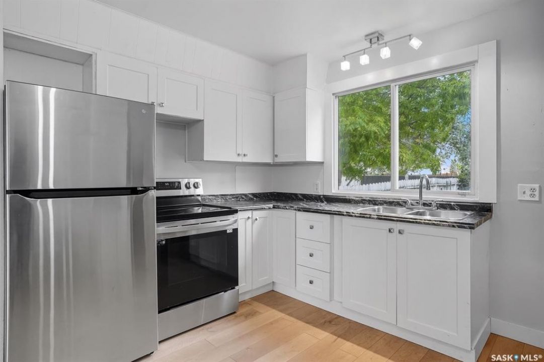 Welcome to 422 Royal St. in Regent Park! This freshly painted semi-duplex offers 3 bedrooms and 1 updated bathroom, making it move-in ready. The bright main floor features a modernized kitchen and bath, updated windows, shingles, soffit, fascia, and eaves for peace of mind. The basement is mostly undeveloped, with a bonus area already finished with laminate flooring – perfect for a future flex space or home office. Outside, you'll find a generous yard filled with perennials, raspberries, and rhubarb, plus a large driveway that previously hosted another garden space for those "green thumbs". If you're looking for an affordable home with plenty of updates, a functional layout, and outdoor space to enjoy – this one is worth a look!