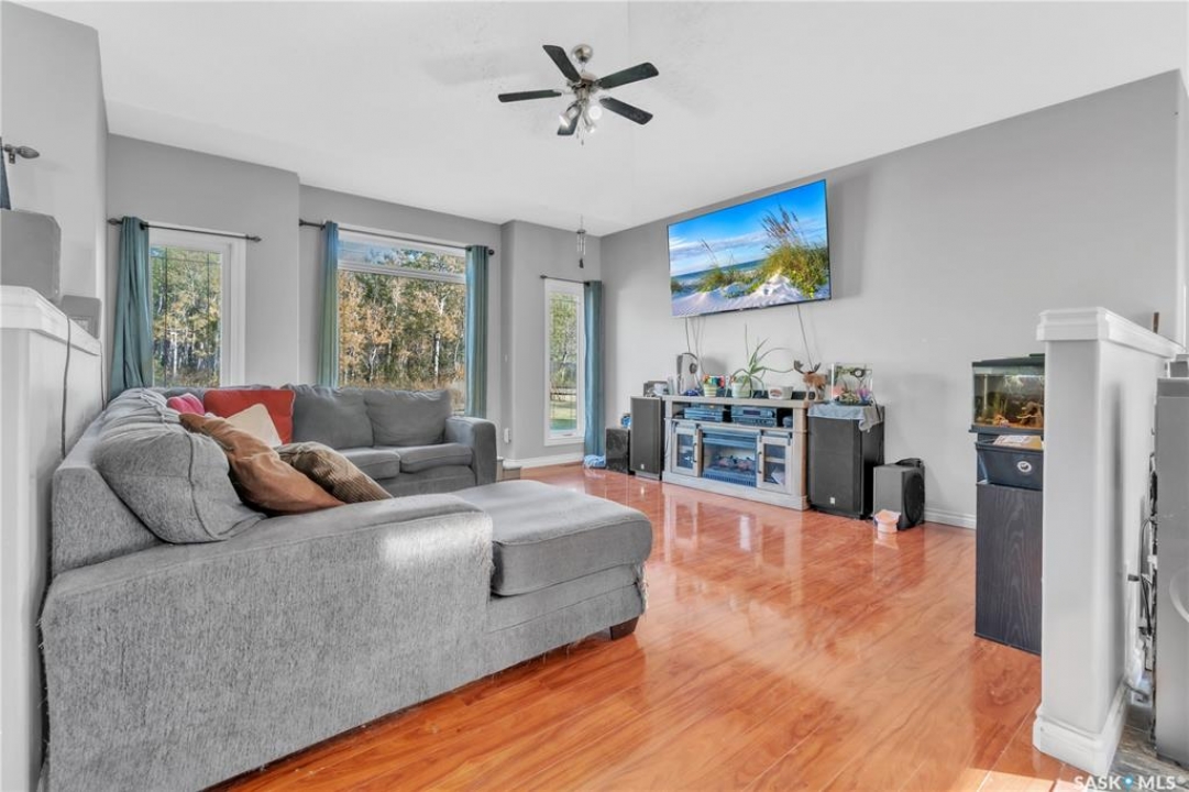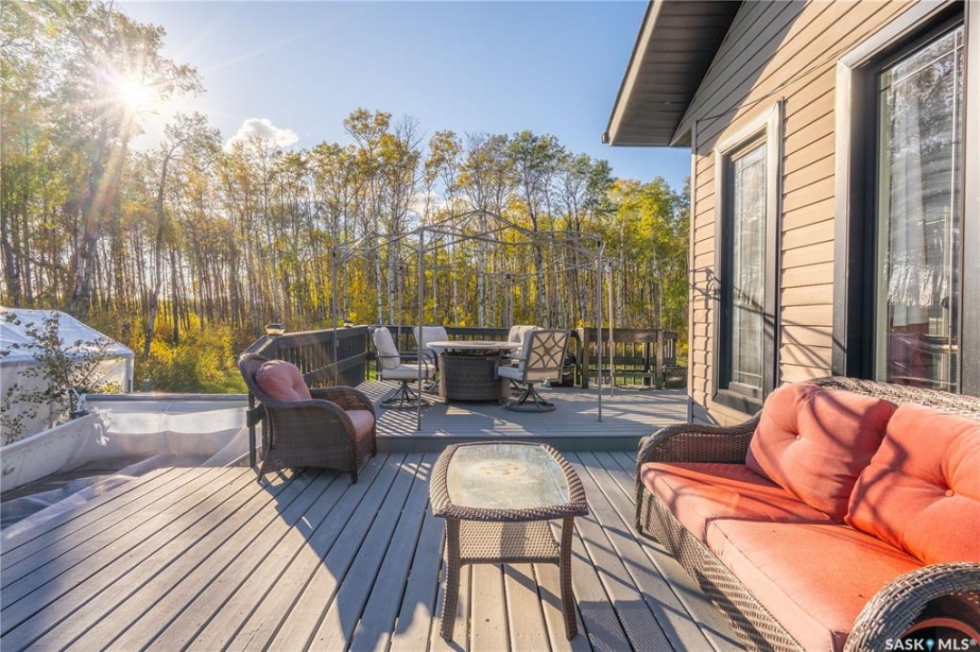 This 2008 home, boasting almost 1700sqft of main-floor living space and held by its original owner, is perfectly situated on ten acres of unparalleled privacy. With three bedrooms and two full bathrooms (plus two more bedrooms and another bathroom roughed in downstairs), step inside to an expansive open-concept layout designed for both effortless family gatherings and grand entertaining. The thoughtfully designed kitchen features sleek stainless steel appliances, rich maple espresso cabinets, and copious storage, with garden doors leading to a generous deck two tired deck. The main level hosts the tranquil primary bedroom with a walk-in closet and a large ensuite showcasing a luxurious jetted tub, along with two additional bright bedrooms, and a practical main-floor laundry room/mudroom. The basement offers exciting potential with two bedrooms and a bathroom roughed-in, ready for your custom touches making this home have the potential of a 5 bedroom/3 bathroom home. You will be impressed by the massive, dedicated hot tub room that has access from the house, featuring 20-foot ceilings, which also provides access to the attached three-car heated garage. Comfort is guaranteed year-round with in-floor heating in the garage, hot tub room, and basement, plus central air conditioning, all efficiently supported by propane heat, a septic tank and open discharge, a drilled well, and a recently installed (2023) reverse osmosis system for pristine water.