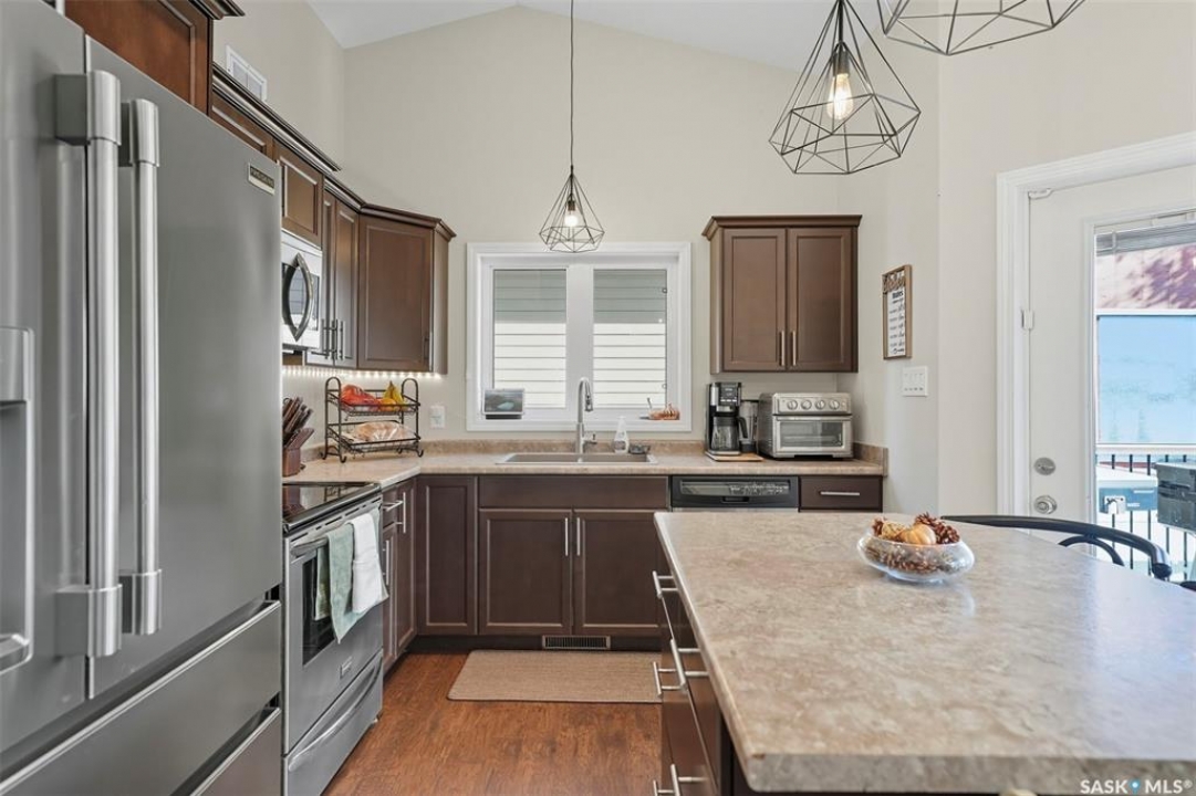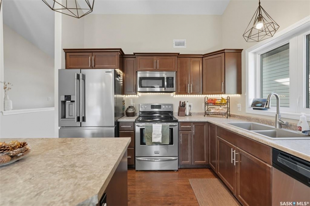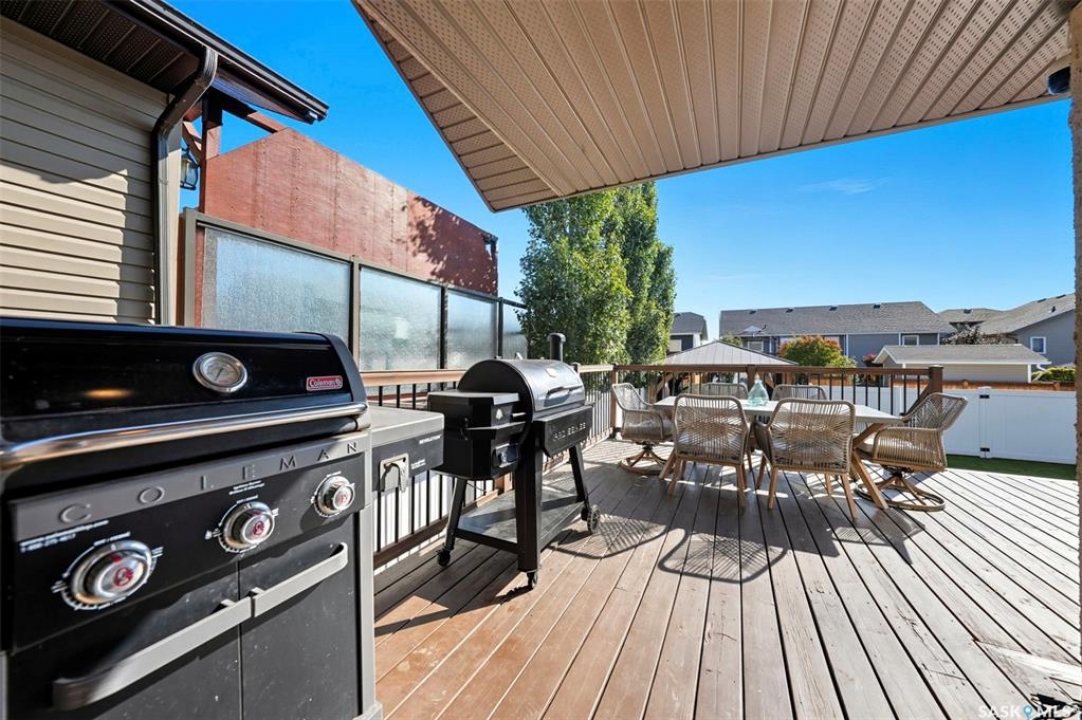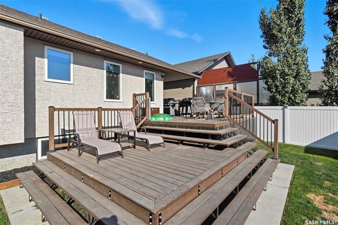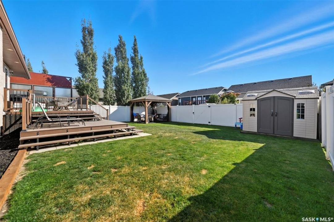 Welcome to this inviting and beautifully maintained 4-bedroom, 3-bathroom raised bungalow offering over 2,200 sq. ft. of finished living space- designed for family living. Updated inside and out, this home is move-in ready and perfect for families or anyone who loves to entertain. The main floor features 3 generously sized bedrooms, including a primary suite with walk-in closet, as well as its own three-piece en-suite bathroom for added privacy and comfort. A beautifully updated main bathroom and the convenience of upstairs laundry make everyday living that much easier. The bright and welcoming living area is highlighted by charming feature walls that add warmth and character, while the kitchen flows seamlessly into the dining space and out to the back deck. With a natural gas BBQ hook-up, it's the perfect spot for family meals and summer gatherings. Downstairs, you'll find a fully finished basement which provides even more space with the perfect hangout spot. Including, a large utility room for ample storage, a spacious and cozy family room, large 4th bedroom, full bathroom completed with an oversized shower and a newly added dry bar that's ideal for entertaining friends or having cozy family movie nights. Outside, the home shines with a fully vinyl fence and landscaped yard- ready for kids and/or pets. The private backyard is an ideal retreat for relaxing or hosting- complete with refreshed landscaping, a refinished deck, a gazebo for shade, and a shed for extra storage. The heated garage provides plenty of storage, as well as year-round convenience and comfort- especially during our cold winters. Updates throughout—including the bathrooms, laundry room, and outdoor spaces—ensure this home completely move-in ready. This home blends comfort, style, and functionality in a family-friendly neighbourhood and is walking distance to all amenities including the Golf Course. This is the kind of home where family memories are made- don't miss the chance to make it yours!