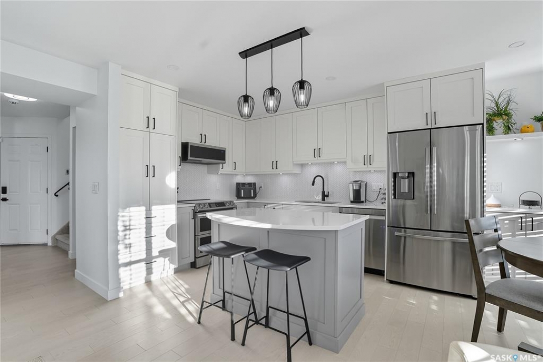 This exceptional corner unit townhome offers over $140,000 in high-end upgrades and boasts 1,341 sq ft of fully developed living space spread across all three levels. From the moment you step inside, the attention to detail and quality craftsmanship are evident. The main floor features a bright, open layout with hardwood flooring, a stylish 2-pc bathroom, and a completely redesigned kitchen with custom cabinetry, a built-in wine fridge in the island and premium finishes. A custom bar nook off the dining room adds both functionality and charm, making entertaining effortless. From here, head out the sliding doors to the southwest-facing patio, where you can soak up the sunshine, enjoy evening BBQs and dinners while overlooking a large green space. Upstairs, the spacious primary bedroom includes a walk-in closet and a stunning, fully renovated 3-pc Jack and Jill bathroom with a beautifully tiled shower. Two additional well-sized bedrooms complete this level. The fully developed basement offers a versatile rumpus room, 3-pc bathroom and laundry area- perfect for extra living or guest space. Additional upgrades include central air conditioning, new furnace, custom plantation shutters, humidifier, central vac, new flooring throughout and more- making this home truly move-in ready. Located in a prime spot close to visitor parking and an abundance of amenities including shopping, restaurants, schools and transit. Don't miss the opportunity to own this one-of-a-kind home in Rosewood that truly checks all the boxes! ****OPEN HOUSE SUNDAY OCT.5th 1-3pm****