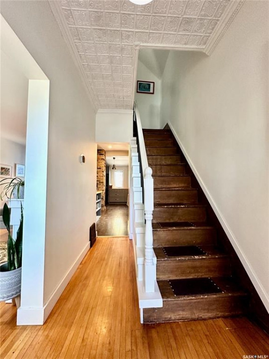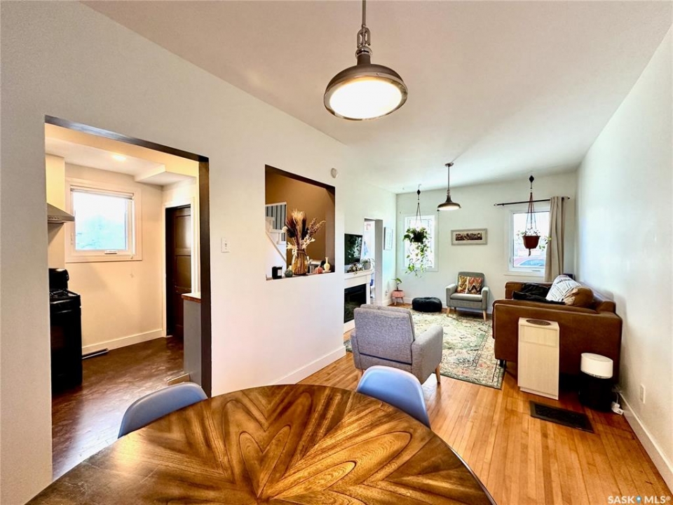 Welcome to Riversdale living at its finest! This character home sits just one house from the river and offers a once-in-a-generation location. From your living room, enjoy sweeping views of the river valley while having instant access to hundreds of kilometres of Meewasin trails, parks, the Farmers' Market, and all the vibrant amenities this trendy urban neighbourhood has to offer. With just under 1,000 sq. ft., this home pairs timeless charm with unbeatable location. The bright front porch provides a cheerful welcome and a touch of separation before stepping into the open living and dining areas, both filled with natural light and framed by those rare river views. The moody yet functional kitchen offers ample cabinet and counter space, along with a rear door leading to the back deck for easy indoor-outdoor living. Upstairs, the character continues with two bedrooms and a full bathroom, perfectly on trend for a home of this vintage. The basement is mostly unfinished, offering plenty of potential, but already features insulated exterior walls, a 100-amp panel, a high-efficiency furnace, and an on-demand water heater, removing worry about major mechanicals. The backyard is open and spacious, with off-street parking and plenty of room for a future garage. Whether you're a first-time buyer, a lover of character homes, or simply someone who values Saskatoon's most coveted riverfront lifestyle, this property is a rare opportunity. You'll be pleased with all the recent upgrades to shingles, mechanical, windows and more!
