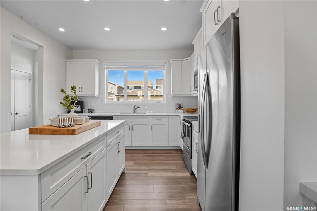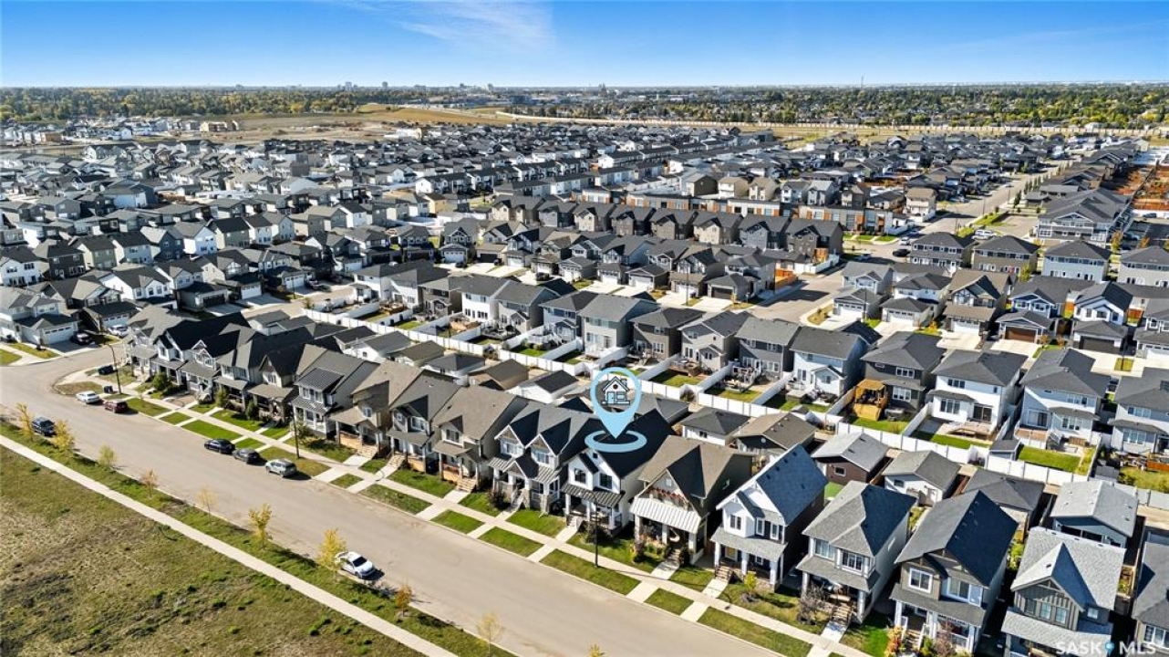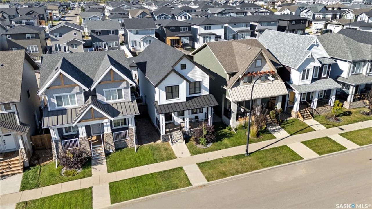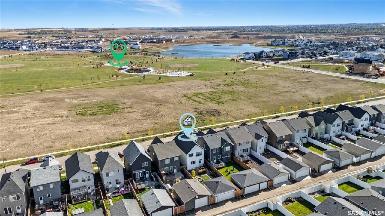 Why buy new when you can buy whole package instead? This 1519 sq ft former Dream show home feels brand new but is already full of upgrades, including custom cabinetry, a gas fireplace, oversized and extra windows, deck, fence, full front and back landscaping, and full window treatments. Plus, this home sits in one of the neighbourhood's most prime locations directly across from Brighton's Core Park, which means morning walks, picnic meet-ups, and community events are all just steps away. Step inside to soaring 9-foot ceilings that fill the main floor with natural light. The open living room is spacious and well-styled, anchored by the sleek gas fireplace and upscale wall that balances cozy warmth with clean modern character. The kitchen is both functional and magnetic, inviting friends and family to gather around the massive island, while custom cabinetry, quartz counters, mixed metal hardware, and stylish lighting set an elevated tone. Upstairs, the primary suite is a true sanctuary, showcasing vaulted ceilings and a spa-inspired ensuite with double sinks, a soaker tub, and a glass-enclosed shower. Two more spacious bedrooms overlooking the park, a full-size laundry room, and four-piece bathroom make the second floor both a highly practical and comfortable retreat. Out back, life is good. A fully landscaped yard with a built-in fire pit area, deck and patio, and underground sprinklers is designed for warm fall days and cool autumn nights. The double detached garage adds extra convenience for both storage and keeping your car parked out of the snow. When you do step out, Brighton's shops, restaurants, and plaza are just minutes away—so grabbing dinner, meeting friends, or running errands couldn't be easier. With bus stops, schools, daycares, and quick access to the U of S and downtown, this is about community, comfort, and creating memories in a home that feels just right. This won't last long - call to book your exclusive viewing now!