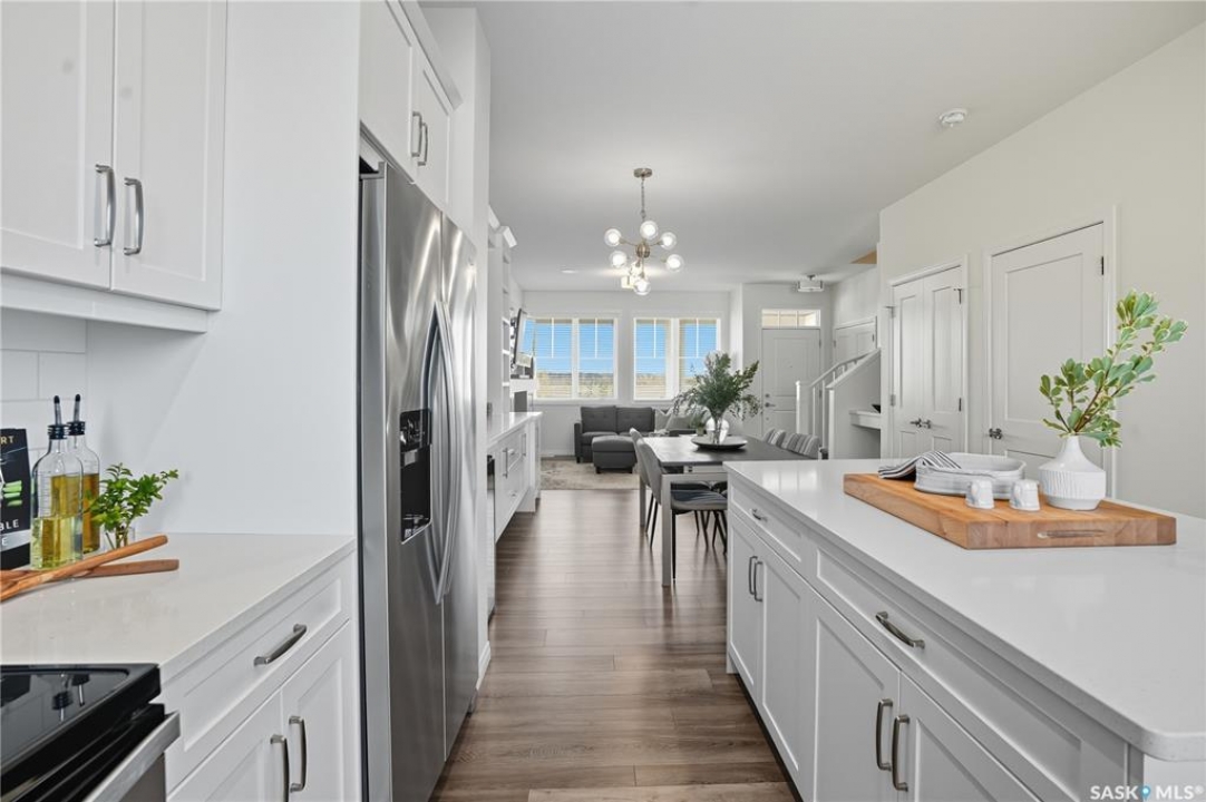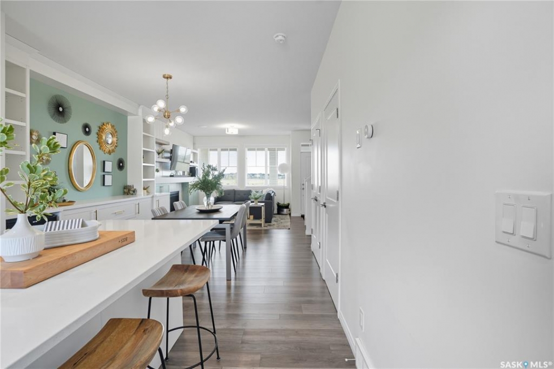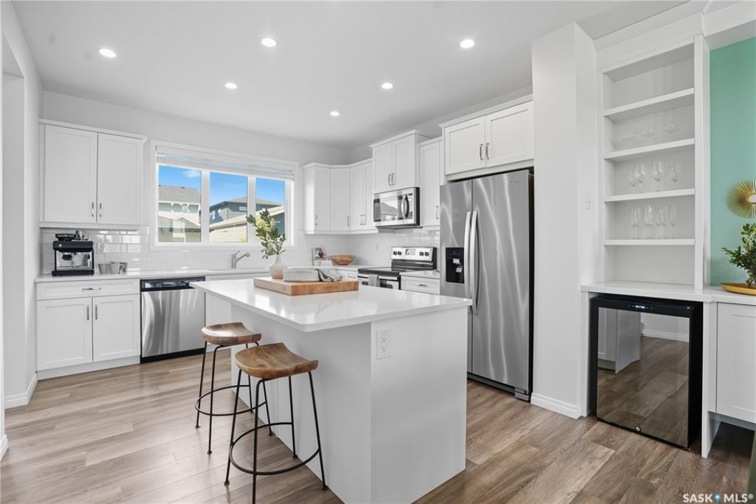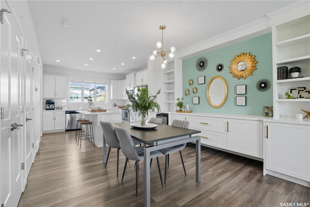Why buy new when you can buy whole package instead? This 1519 sq ft former Dream show home feels brand new but is already full of upgrades, including custom cabinetry, a gas fireplace, oversized and extra windows, deck, fence, full front and back landscaping, and full window treatments. Plus, this home sits in one of the neighbourhood's most prime locations directly across from Brighton's Core Park, which means morning walks, picnic meet-ups, and community events are all just steps away. Step inside to soaring 9-foot ceilings that fill the main floor with natural light. The open living room is spacious and well-styled, anchored by the sleek gas fireplace and upscale wall that balances cozy warmth with clean modern character. The kitchen is both functional and magnetic, inviting friends and family to gather around the massive island, while custom cabinetry, quartz counters, mixed metal hardware, and stylish lighting set an elevated tone. Upstairs, the primary suite is a true sanctuary, showcasing vaulted ceilings and a spa-inspired ensuite with double sinks, a soaker tub, and a glass-enclosed shower. Two more spacious bedrooms overlooking the park, a full-size laundry room, and four-piece bathroom make the second floor both a highly practical and comfortable retreat. Out back, life is good. A fully landscaped yard with a built-in fire pit area, deck and patio, and underground sprinklers is designed for warm fall days and cool autumn nights. The double detached garage adds extra convenience for both storage and keeping your car parked out of the snow. When you do step out, Brighton's shops, restaurants, and plaza are just minutes away—so grabbing dinner, meeting friends, or running errands couldn't be easier. With bus stops, schools, daycares, and quick access to the U of S and downtown, this is about community, comfort, and creating memories in a home that feels just right. This won't last long - call to book your exclusive viewing now!
