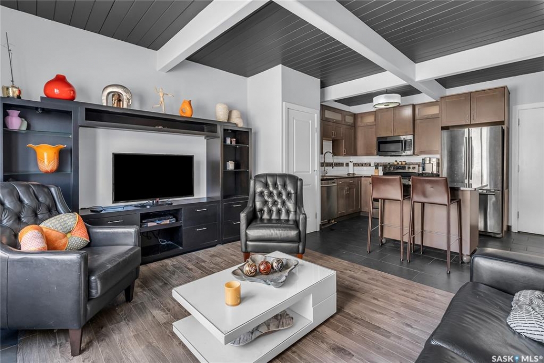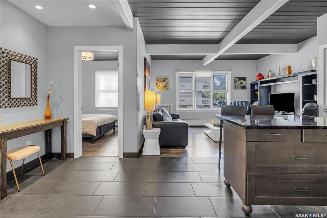 This sleek top-floor 1-bedroom, 1-bathroom condo is perfect for those seeking both style and convenience. The kitchen features beautiful granite countertops, a functional island, and ample counter space for meal prep and entertaining. With in-suite laundry, 10-foot ceilings, and an abundance of natural light, the space feels open and inviting. It also comes with one electrified parking spot. Additionally, the condo is available fully furnished, making it an ideal turn-key investment property for those looking to generate rental income.