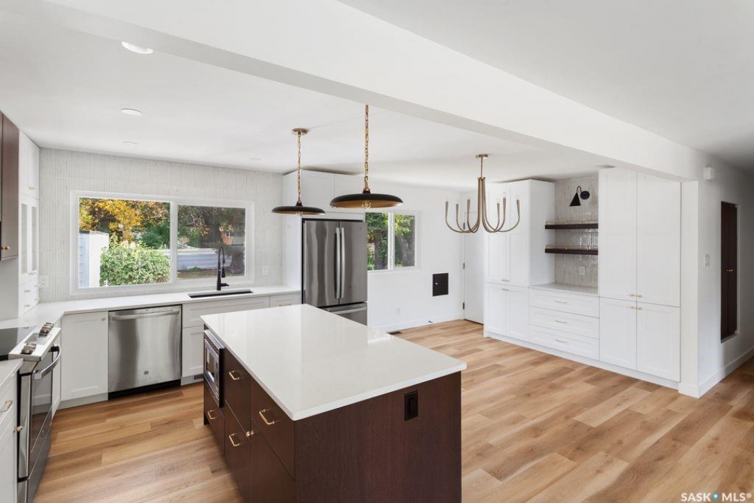Beautifully renovated home with mortgage help. This 1138 square foot bungalow has gone thru a major update. The living room, dining room, and kitchen have been opened up to create a bright and roomy feel. New kitchen cabinets, counter tops, lighting, windows, and stainless steel appliances bring this space to a modern sophisticated look. There are 3 bedrooms upstairs and a fully remodeled 4 piece bath complete with his and her sinks. The lower level has a new permitted 3 bedroom suite. A sleek kitchen with peninsula eating bar and full appliance package, open up to a spacious family room. Beautiful 3 piece bath. This is all located on a large lot with a single car garage and mature trees. Holliston neighborhood is centrally located close to schools, shopping, parks, and the University of Saskatchewan.