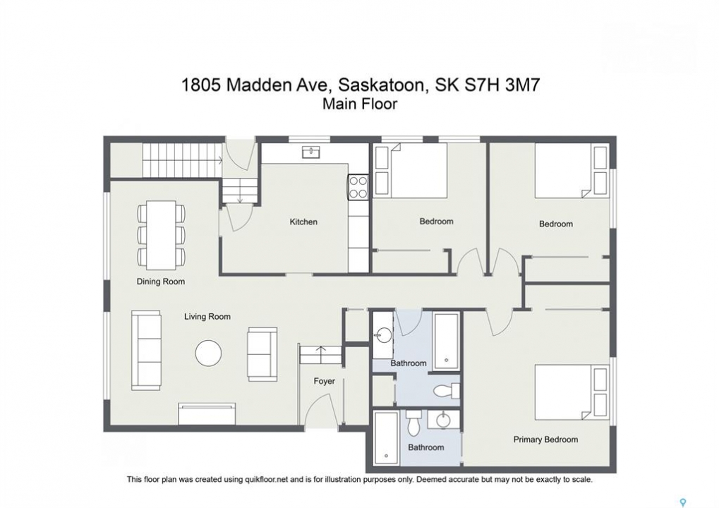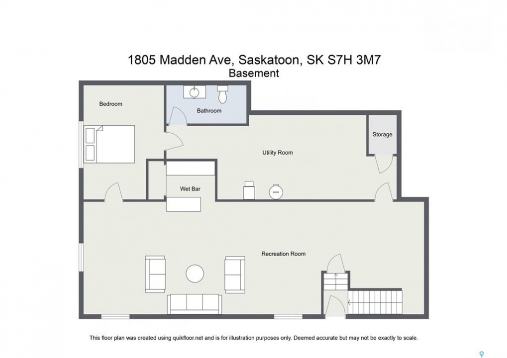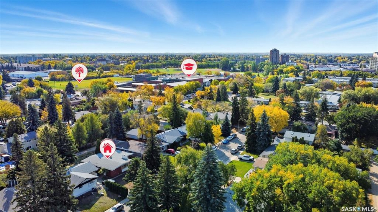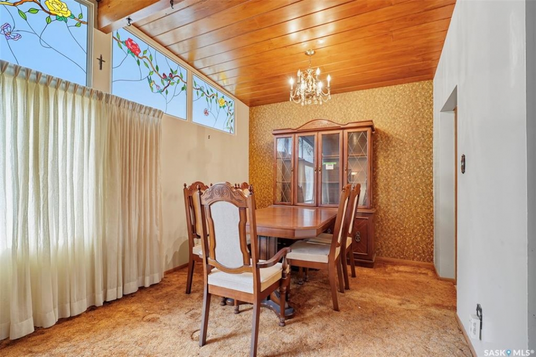Welcome to 1805 Madden Avenue — a mid-century modern gem nestled in one of Saskatoon's most sought-after neighbourhoods. Built in 1963, this 1,202 sq. ft. bungalow captures the timeless design and character of its era, offering clean lines, wood ceilings, large windows, and an abundance of natural light throughout. Step inside to discover an inviting main floor layout featuring a spacious living room with a gas fireplace, a dedicated dining area, and a bright kitchen with plenty of workspace and vintage charm. The home offers three comfortable bedrooms and two full bathrooms on the main level, including a primary suite with its own 4-piece ensuite — a rare find for its time. Downstairs, the basement is developed with a large family room, additional bedroom, bathroom, and ample storage space, creating the perfect opportunity for updating or reimagining to suit your style. Outside, enjoy a mature 56' x 110' lot with trees and shrubs, a garden area, and a single attached garage with extra off-street parking on the extended driveway. Situated in the heart of Brevoort Park, this home is steps from schools, parks, and amenities — a fantastic location for families or anyone looking to invest in a desirable neighbourhood. With great bones and classic mid-century appeal, this property offers endless potential to renovate, restore, or simply move in and make it your own. Don't miss your chance to own a piece of architectural history in one of Saskatoon's most established communities.