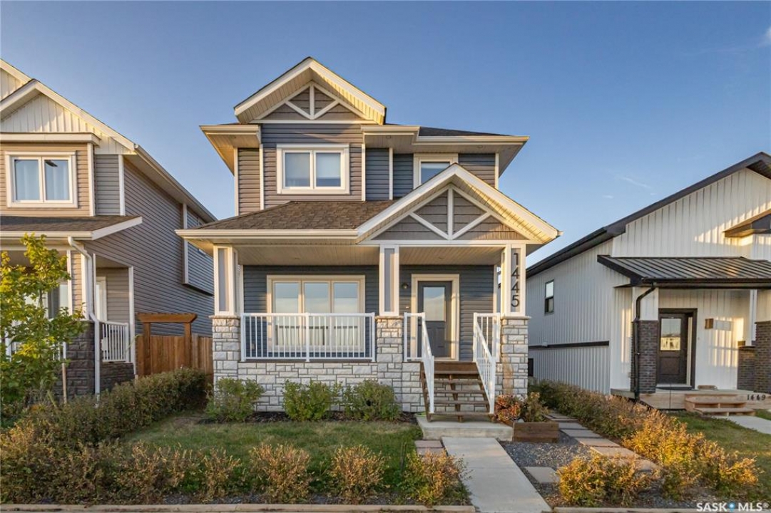 Welcome to 1445 Besnard Drive built by Edison Homes in Martensville. This beautiful home an open concept main living area with laminate flooring, large kitchen with an abundance of counter space, pantry, large island and tile backsplash, complimented with quartz countertops throughout. The back entry has a mud room area and 2 piece bath. The dining room is an alcove style dining; and large walk in closet at the front door. The second level features a large primary bedroom with 4pc ensuite and a large walk in closet. Two additional bedrooms, a 4 piece bath and full laundry room completes the upper level. There is direct entry to the basement which has been developed as a "mother in law" suite with a kitchen, living room, laundry, bedroom and 4pc bathroom. This home has great street appeal featuring a craftsman style exterior with extensive stone accents and oversized front pillars, concrete front sidewalk with sod, a xeriscape back yard with large deck (gazebo & shed included), a double detached garage which is partially insulated and is wired and ready for heat & a 220 amp. This home is located within a short distance to the new elementary school. All appliances & window coverings included. Immediate possession preferred. Buyer/Buyer's agent to verify measurements. Call to book your viewing today.
