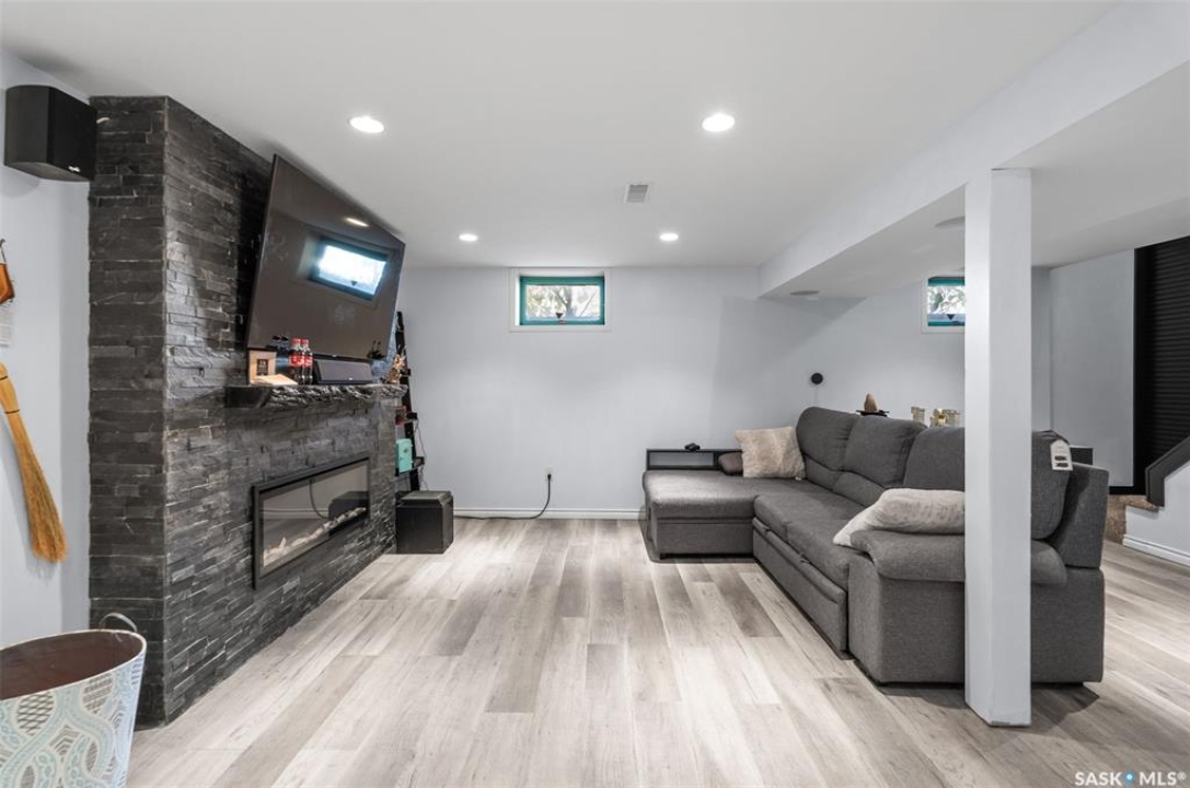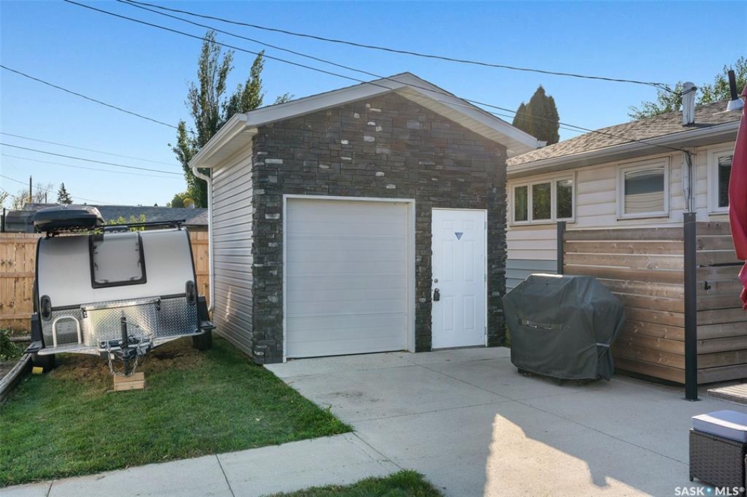 Welcome to this well-kept family home tucked away on the edge of Mount Royal, kitty-corner to green space and a school. Built in 1963, this 960 sq. ft. bungalow sits on a desirable corner lot and offers plenty of updates and features for comfortable living. Inside you'll find 3 bedrooms on the main floor plus 1 down, 2 bathrooms, and a spacious rec room with an electric fireplace. The kitchen boasts hickory wood cupboards. Enjoy modern update tech tools like google nest thermostat and back door smart lock and a new dishwasher, washer, and dryer (2025), a hot water heater (2023), and updated windows. The lower level offers excellent additional living space and flexibility for family or guests. Outside, enjoy the hot tub, a cozy firepit area, and a fully fenced yard perfect for gatherings. Car enthusiasts or hobbyists will appreciate the oversized 14 x 24 detached garage, fully insulated and heated with natural gas and an additional 12 X 12 shed with an overhead door. This Mount Royal location offers a quiet, tucked-away feel while keeping you close to parks, schools, and amenities. A wonderful opportunity in a sought-after neighborhood—ready for its next owners!