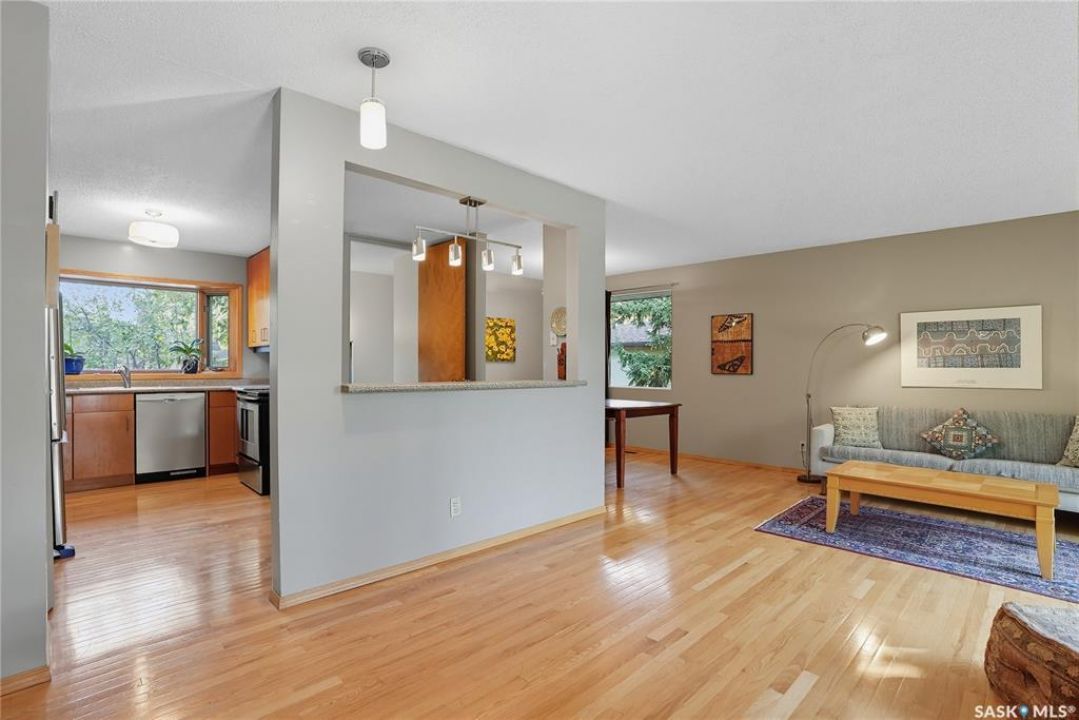 Situated within Ling Street's beautiful streetscape, and just around the bend from Albert Milne Park and gardens, 5 Ling Street offers a wonderfully-kept, fully developed 4bed/3bath home, with nearly 2,400sf of living space. The location, within the much admired Greystone Heights neighbourhood, is also within a 5min walk of Greystone Elementary School (home to Saskatoon's SAGE program) and Park, 14th Street's cycling and walking 'greenway', 8th Street shopping and dining amenities, and is a short morning cycle or drive to work at RUH or the University of Saskatchewan. Inside, this family home offers 1,190sf in a semi-open plan, highlighted by its generous living room, an ensuite bath, and contemporary open sight lines between the kitchen and living areas – great for conversational dinner prep and evening entertaining of friends. The classic main floor features a contemporary European kitchen, stunning bayed window views of the front and rear yards from the living room & kitchen, upgraded hardwood flooring, renovated baths, 8' interior doors and closets, and a selection of lighting upgrades. The lower level has been remodelled with a fresh, bright and modern interior aesthetic in mind, with updated carpet & Terrazzo tile flooring, upgraded insulation & ceilings, sconce lighting, bright white trim package, and a wonderful 3-pc bathroom. The basement includes a generous family room area, studio or den space, guest bedroom, remodelled laundry facilities, and ample storage. Several other notable features include, updated shingles, a full appliance package (including a Boesch dishwasher), composite deck, updated plumbing (incl. a hi-eff. hot water heater in 2024), electrical, and a refreshed home exterior with fabulous spaces for outdoor entertaining and a gorgeous variety of shade, fruit, and ornamental trees. You are invited to contact your local REALTOR � to schedule your own personal tour of this fine home today!