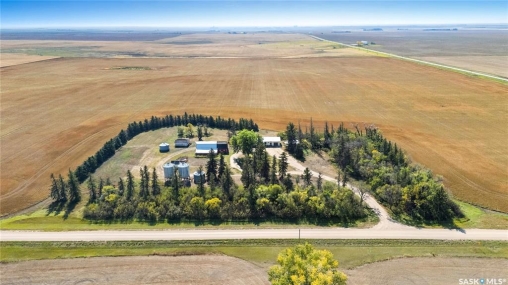 Are you looking for an acreage to call your own? This beautifully treed 10 acres is just an 1/8th of a mile off pavement but feels very private due to all the trees. The bungalow style home boasts just under 1,300 sq.ft. plus an oversized single attached garage! From your attached garage you head inside to your large mudroom complete with a wash sink! From there you head into your open concept kitchen / dining room. The spacious U-shaped kitchen boasts lots of cabinets and counter space with beautiful views of your yard. Next we find a huge living room with large windows giving lots of natural light - the perfect space for the whole family or for entertaining. Down the hall we find a beautifully updated 4 piece bathroom and a large primary bedroom boasting both "his and hers" closets. Heading downstairs we find a large family room - great for the kids. A good sized bedroom with a walk-in closet and 4 piece ensuite. Finally there is a large storage, laundry and utility space! Heading outside we find so many mature trees providing great shelter. There are 2 more oversized single car garages (one is 18 x 20) - one is not in great shape. There is also a beautiful old barn that is 26' x 60' plus lean-too. Whether you are just looking for a quieter lifestyle, to have a hobby farm or to raise your kids outside of town this could be a great option. Located just minutes from Assiniboia! Reach out today to book your showing!