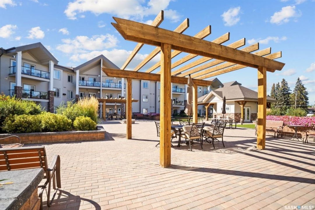 Welcome to 313 Churchill Gardens — the most desirable unit in Saskatoon's most sought-after condominium community. This bright and beautifully maintained home offers the perfect retirement lifestyle, combining comfort, convenience, and community. Located on the third floor with prime access to the elevator and just steps from the multi-purpose room, this spacious one-bedroom plus large den, two-bathroom condo features a thoughtful layout that feels both functional and inviting. The open kitchen and dining area are ideal for everyday living and entertaining, while the living room extends onto a private deck that opens directly onto the peaceful interior garden courtyard — a rare and highly valued feature. The primary bedroom includes a walk-thru closet and ensuite bath, complemented by a second full bathroom for guests. A heated underground parking stall is also included for year-round comfort. Churchill Gardens is known as one of Saskatoon's best-managed and most welcoming condominium communities. Residents enjoy a games room, fitness and wellness spaces, beautifully landscaped gardens, and inviting social areas designed for connection and relaxation. The building is quiet, secure, and truly maintenance-free, offering peace of mind and a sense of belonging. Perfectly situated, the location offers easy access to 8th Street, Circle Drive, shopping, dining, and medical services, making everyday errands simple and stress-free. Whether you're moving in off the farm or downsizing from a house in Saskatoon, this home is designed for those ready to enjoy a vibrant, maintenance-free lifestyle. Churchill Gardens is Saskatoon's hidden gem — and this is your rare opportunity to own its best unit.