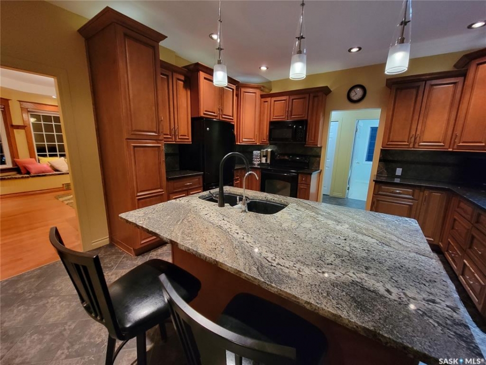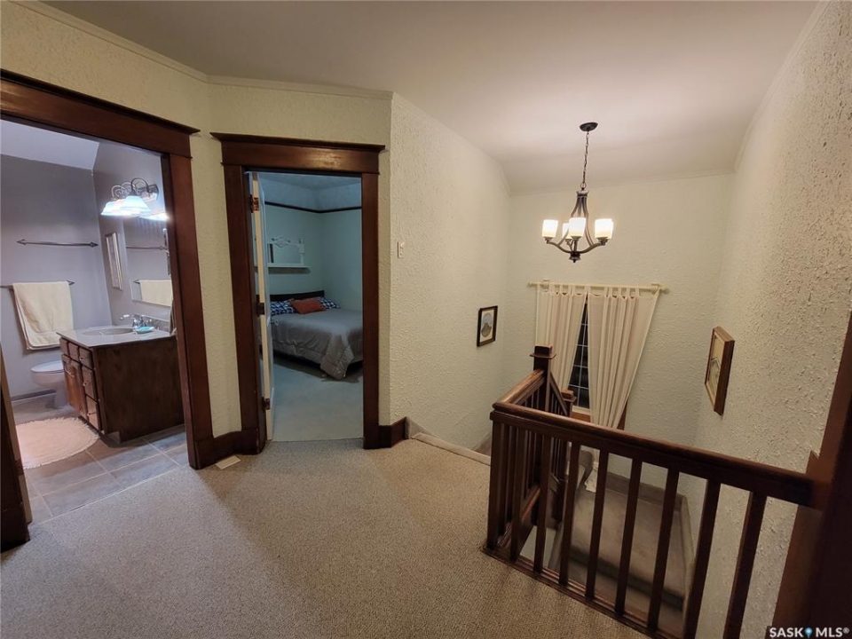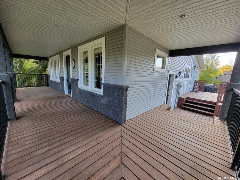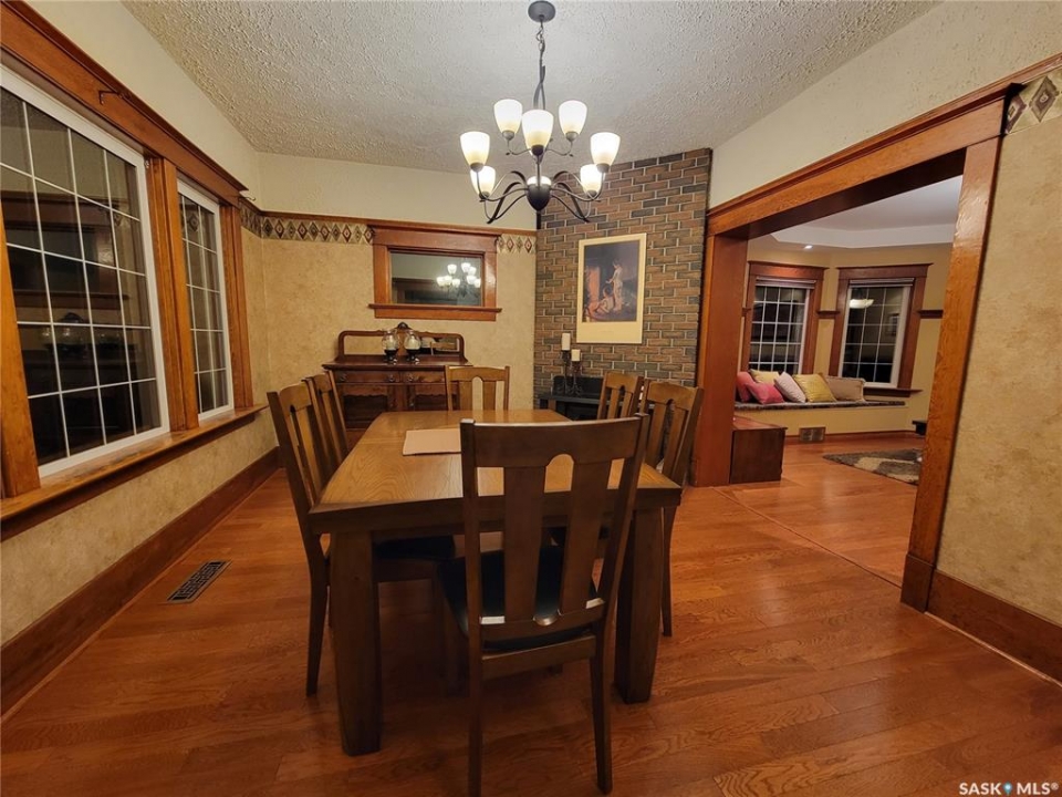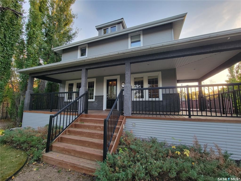 This home blends timeless architectural charm with modern comfort. Originally the Oatway homestead, it was moved into Unity and placed on a new foundation in 2002, carefully revitalized to preserve its heritage. Set on a double lot, you'll enjoy both community living and a country feel. Outdoors is a gardener's paradise with mature trees, perennials, rock beds, garden plot, pond, firepit, and stamped concrete ground-level patio and walkways. A heated triple garage, triple-car asphalt driveway, RV parking, and garden shed add function and appeal. The wrap-around veranda with pot lighting leads to a spacious two-tiered deck. Inside, the home showcases rich wood tones throughout, starting with the beautifully appointed Chef's Kitchen featuring plenty of cabinetry, granite countertops, island with prep sink, black appliance package, and accent lighting. The dining area with wood stove flows into a warm living room with hardwood floors, bay window, and cozy window seat. Main floor includes a 4-piece bath with double sinks, laundry room, and den. Upstairs offers three bedrooms and a 4-piece bath, including the generous primary suite with walk-in closet and private 2-piece bath. The basement, built in 2002 with 9-ft ceilings, provides a family room with gas fireplace and wet bar, bonus space, fourth bedroom, 3-piece bath, and utility room. Additional features: underground sprinklers, central air, central vac, water softener, natural gas heating, 100-amp panel, and RV outlet. A rare blend of history, architectural elegance, and modern function—ready to call yours. Book your showing today! Pleasw note: awaiting 2025 property tax amount and it will be updated within a few days.