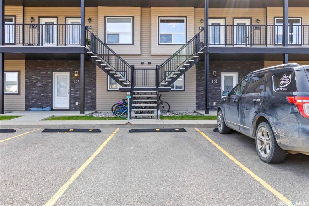 Welcome to the Hampton Villas! Step into this inviting 2-storey townhouse and instantly feel at home. Perfectly situated just off Hampton Circle, you will enjoy easy access to nearby parks, schools, shops, and restaurants—everything you need is right at your doorstep. The bright and welcoming main floor features a spacious living room that flows seamlessly into a stylish U-shaped kitchen complete with granite countertops and an eating bar—ideal for casual dining or entertaining. Step through the patio doors to a private balcony, perfect for enjoying your morning coffee, with a convenient outdoor storage room. Upstairs, you will find 2 bedrooms, a 4 piece bathroom, ample closet space, and laundry for added convenience. One designated parking stall is located directly below the unit for easy access. Whether you're a first-time home buyer or seeking a great investment opportunity, this well-maintained home offers unbeatable value in a fantastic location. Don't miss out—schedule your private showing today!