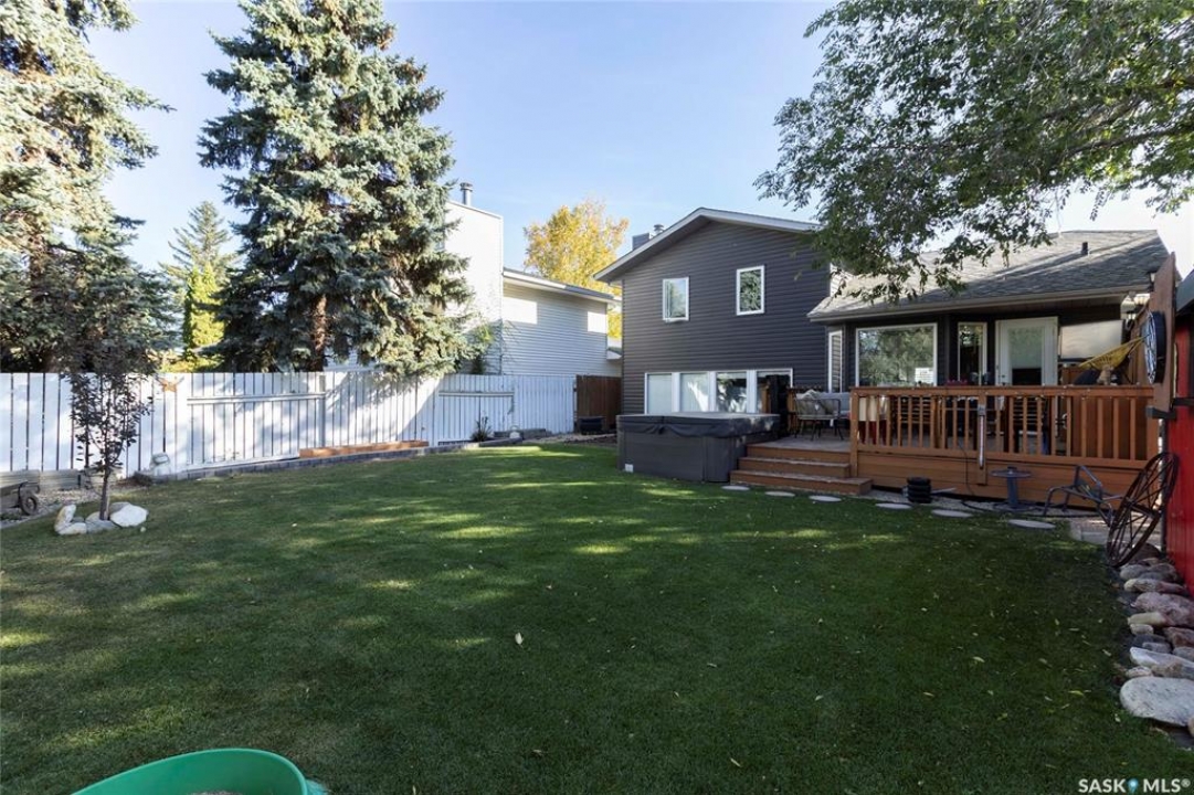 Outdoor: Deck, Fenced, Garden Area, Lawn Back, Lawn Front, Trees/shrubs