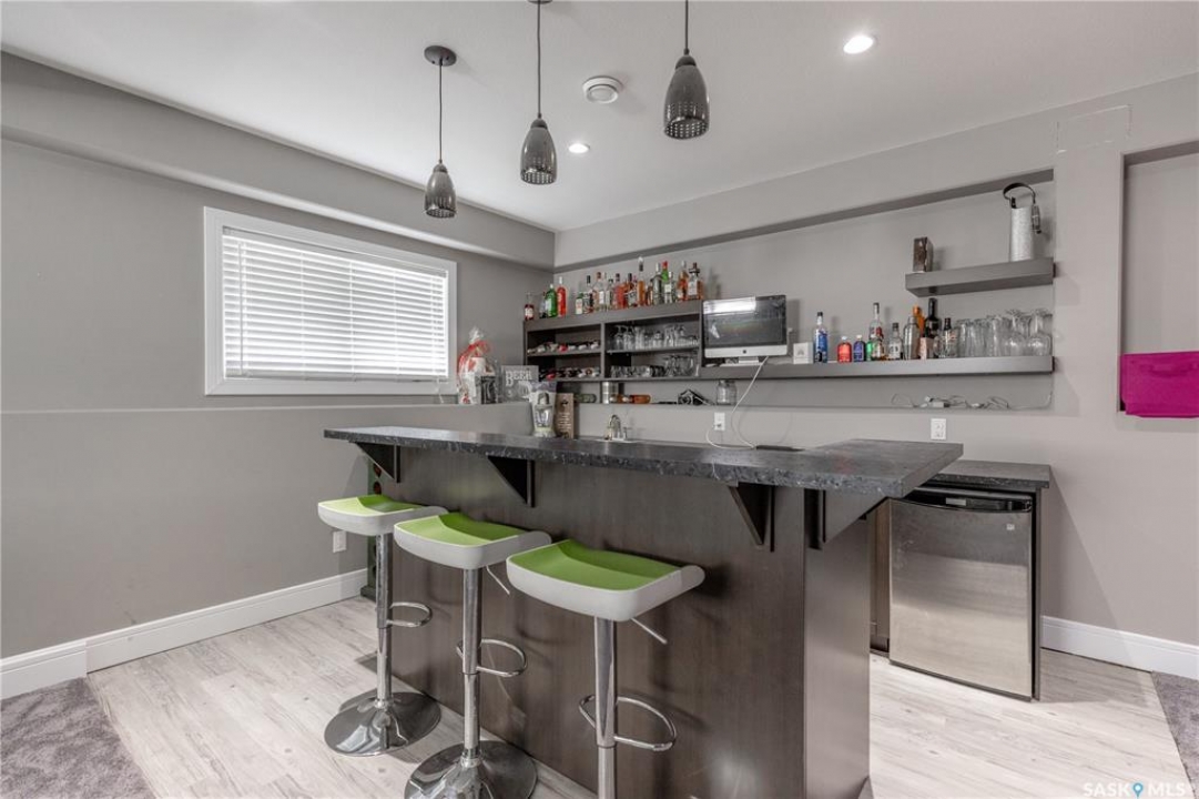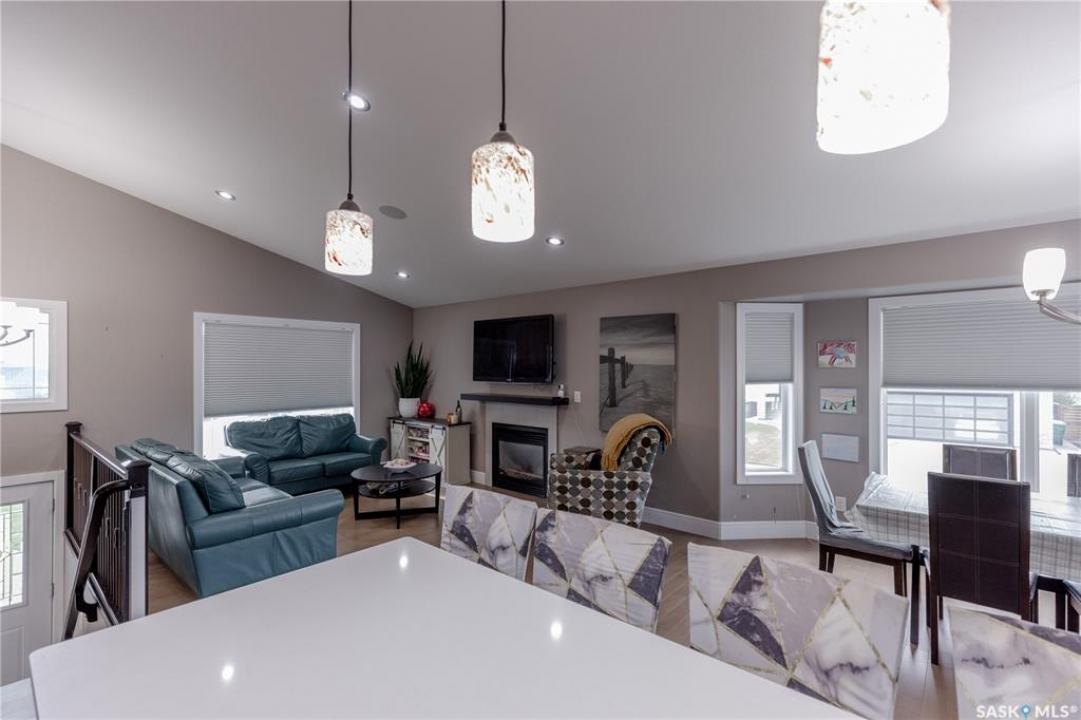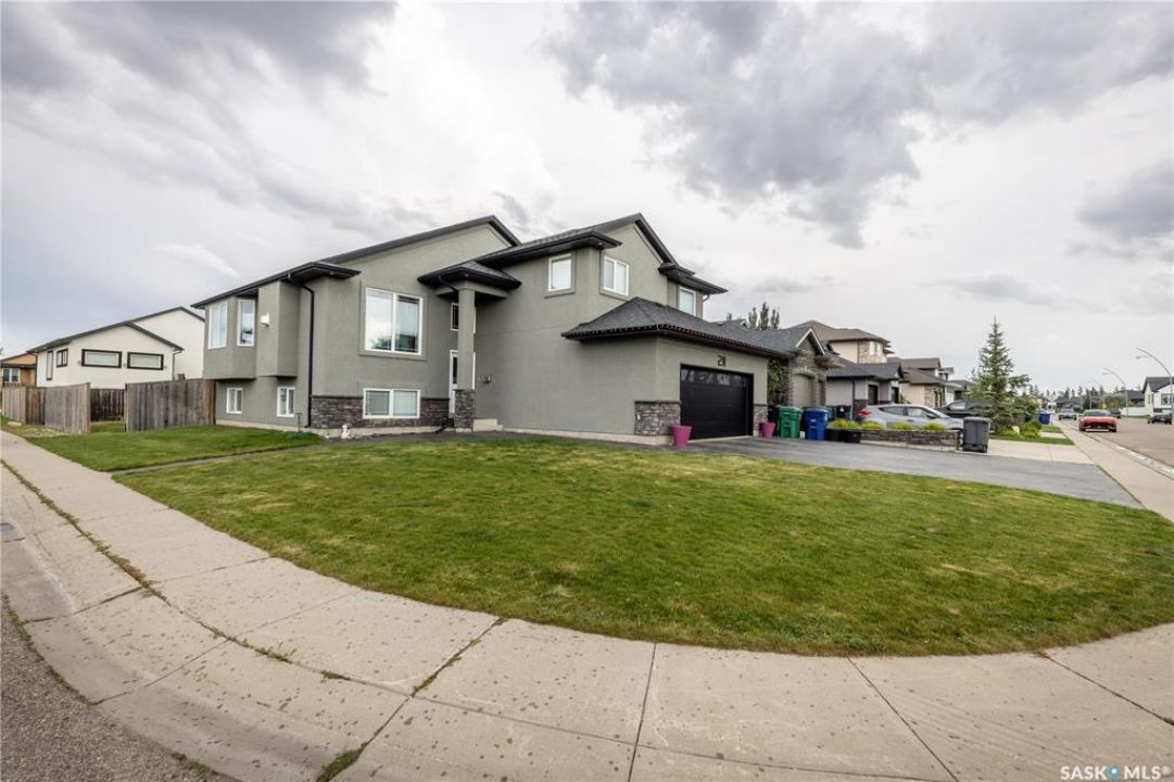 Welcome to 211 Sauer Crescent in beautiful evergreen! This 1,459 sqft modified bi-level is the kind of home that balances family function with a little bit of flair. Set on a large corner lot, you'll enjoy extra outdoor space for kids, pets, or your dream garden. The fully fenced yard, deck, and heated double attached garage make everyday life just a little easier (and warmer in the winter). Inside, the open-concept main floor invites connection. The spacious kitchen boasts quartz countertops, plenty of storage, and a layout that flows right into the living and dining areas. A gas fireplace adds the perfect touch of cozy for movie nights or lazy Sundays. With 4 bedrooms and 3 bathrooms, there's room for everyone to spread out. The primary suite features a 5-piece ensuite and a walk-in closet—big enough to keep you organized, even if you're not a minimalist. Head downstairs and you'll find the ultimate hangout zone: a full wet bar complete with floating shelves, built-in fridge, dishwasher, and built-in speakers. Whether you're hosting friends, family, or just yourself and the game, this lower level is designed for good times. Evergreen is one of Saskatoon's most family-friendly neighbourhoods, with schools, parks, trails, and all the amenities you need just a short drive away. If you've been hunting for a home that's practical, stylish, and ready for your next chapter, this one might just be the perfect fit. Come take a look—you'll see why Evergreen feels like home!