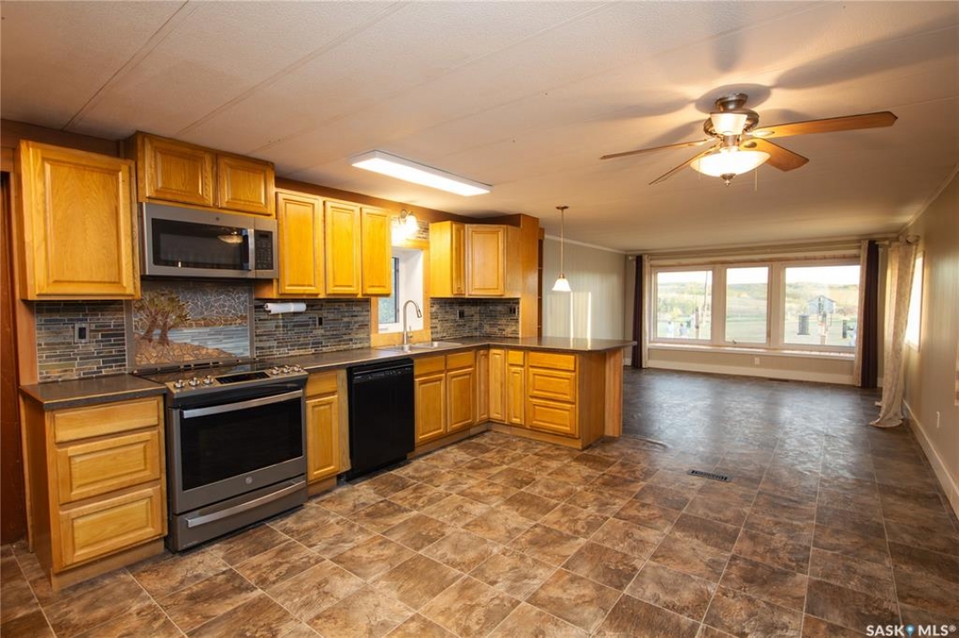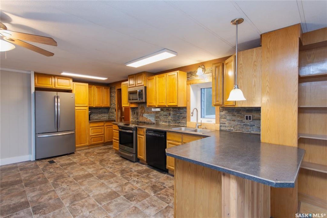 Country living at its best, this 10.28 acre acreage is just what you're looking for! Take a drive through the beautiful rolling hills of Saskatchewan to this updated and move in ready 1380sqft house! Step up into an entrance where memories will be made, featuring a large mud room to store all your jackets and boots. To the right, an open kitchen with timeless oak cabinets and a spacious living room with large bay windows to enjoy every sunset and sunrise. Upstairs features two bedrooms with fresh flooring and an updated 4 piece bathroom. Upstairs laundry and storage area is just past the kitchen. Continuing downstairs, you'll find a landing and separate entrance, providing easy access to a fire pit/gathering area. Heading downstairs, you'll find a beautiful 3 piece bathroom and large rec room with a wood burning stove. On either side are two spacious bedrooms and a mechanical/workshop room in the middle. The land features a 20'x28' garage/shop (has its own electrical panel. Natural gas line is ran to this garage, natural gas heater is included but not connected), a 26'x48' quonset with a 100amp panel, a chicken coop, garden area, and many other storage sheds. For the hobby farmers, the perimeter is fenced and the land is planted for grazing. Many updates include:House metal roofing (approx 5yrs), all new windows upstairs and new basement bathroom in the house, garage roof (approx 5 years) & quonset roof and complete basement renovation, and a 200 amp panel.