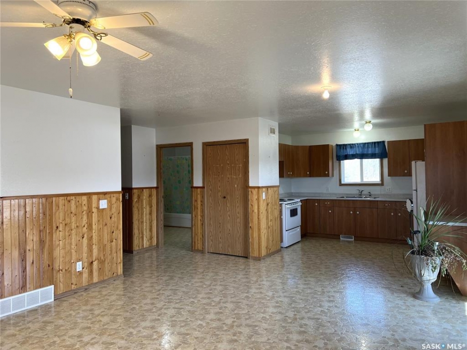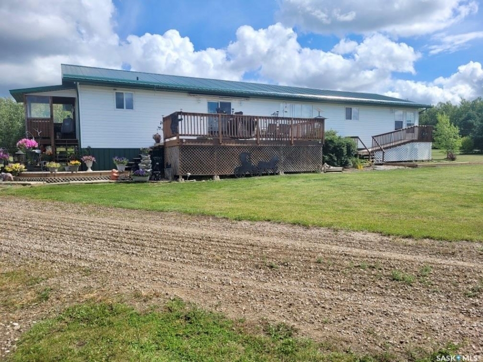 This 2006 bungalow is 2,220 sq ft with a 30'x50' shop on 10 acres in the RM of Loon Lake and would make an excellent family home. Main level features large kitchen with lots of counter space, dining area with access to a west facing deck, living room, primary bedroom with 4pc ensuite, 2nd bedroom, 2pc bathroom/laundry, mudroom plus a one bedroom fully self-contained nanny suite on main level. Suite has its own laundry and south facing covered deck. The basement hosts a large family room, 2 more bedrooms, 4pc bathroom, utility room, cold storage room, large storage room and another small storage room. You also have access to the back yard from the basement. New propane furnace in 2015 and basement has hot water infloor heat. New water treatment system in 2021, pressure tank and septic tank pump 2022. Metal walled/roofed shop built in 2008 has 16' walls set on concrete foundation, two sliding doors, 220 volt plug, loft/storage area and air compressor. Yard is beautifully landscaped with lots of shrubs, fruit trees, garden area and 2 sheds. Located 9km West of Makwa.