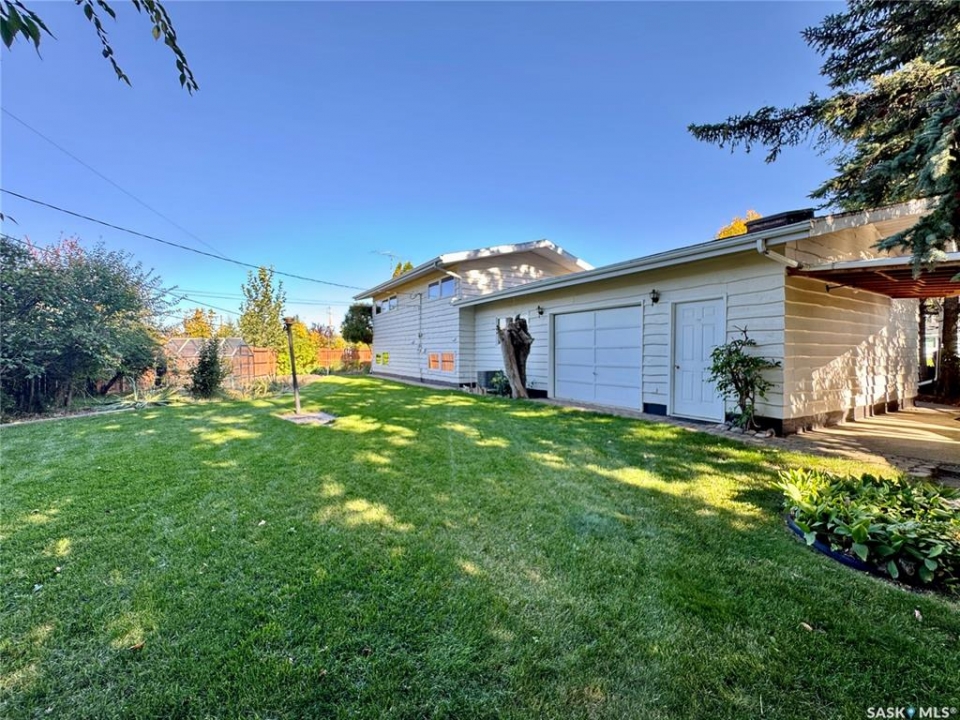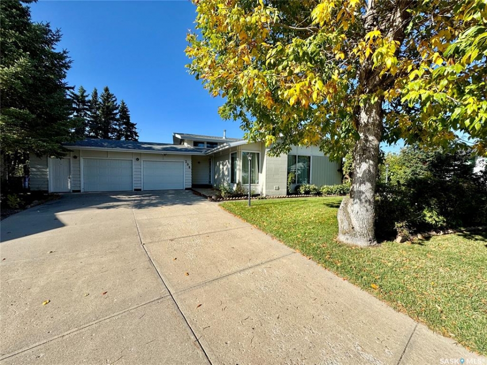 A home with history, heart, and room for your next chapter. Built in 1966 and lovingly held by the same family since the first shovel hit the ground, this property has been a place of life and laughter for nearly 60 years. Now, for the first time, it's ready to welcome new owners to continue the story. Tucked into a quiet bay, this lot backs both greenspace and the park. It's the kind of yard that's hard to come by — offering privacy, room for kids to explore, and the comfort of being steps from community amenities. To the east, a private sun deck catches the morning light for gardens, while the west side provides natural shade for summer evenings. The oversized heated double garage will grab your attention with two newer front doors and a third at the rear for easy pull-through access. Inside, a large entryway ties the home together, connecting both front and back doors. The living room is warm and inviting, anchored by a wood-burning fireplace and a corner window that delivers mid-century style and floods the space with natural light. The dining area is perfectly suited for family gatherings, while the split-level layout keeps kids close but gives them their own space in the basement. Tucked modestly apart is the bedroom wing with two children's rooms and a primary suite overlooking the greenspace. The Jack-and-Jill bathroom is generously sized with double sinks, storage, and direct access from the master. This home is both a time capsule and a canvas — cherished for decades and now waiting for its next family to make it their own. Whether it's the park-side location, the unique lot, or the character-filled design, 208 Hillside Bay is ready for new memories to be made.